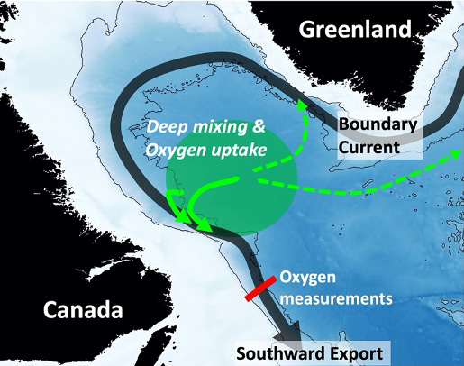 Die neuen Messungen ergaben, dass etwa die Hälfte des Sauerstoffs, der im Winter im Inneren der Labradorsee aus der Atmosphäre aufgenommen wird, in den folgenden fünf Monaten in das Stromsystem eingespeist wird. Während ein Teil des verbleibenden Sauerstoffs möglicherweise vor Ort von Fischen und anderen Organismen verbraucht wurde, nahm der größere Teil höchstwahrscheinlich eine alternative Route aus der tiefen Mischungsregion heraus.