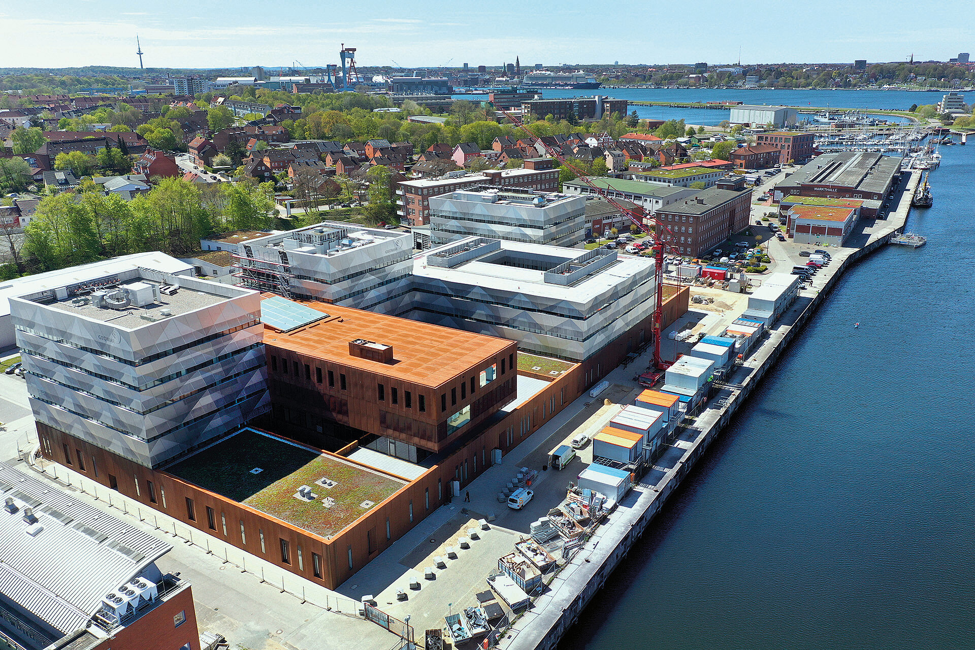 Luftaufnahme des GEOMAR-Neubaus vom Mai 2023. Foto: Sarah Uphoff, GEOMAR