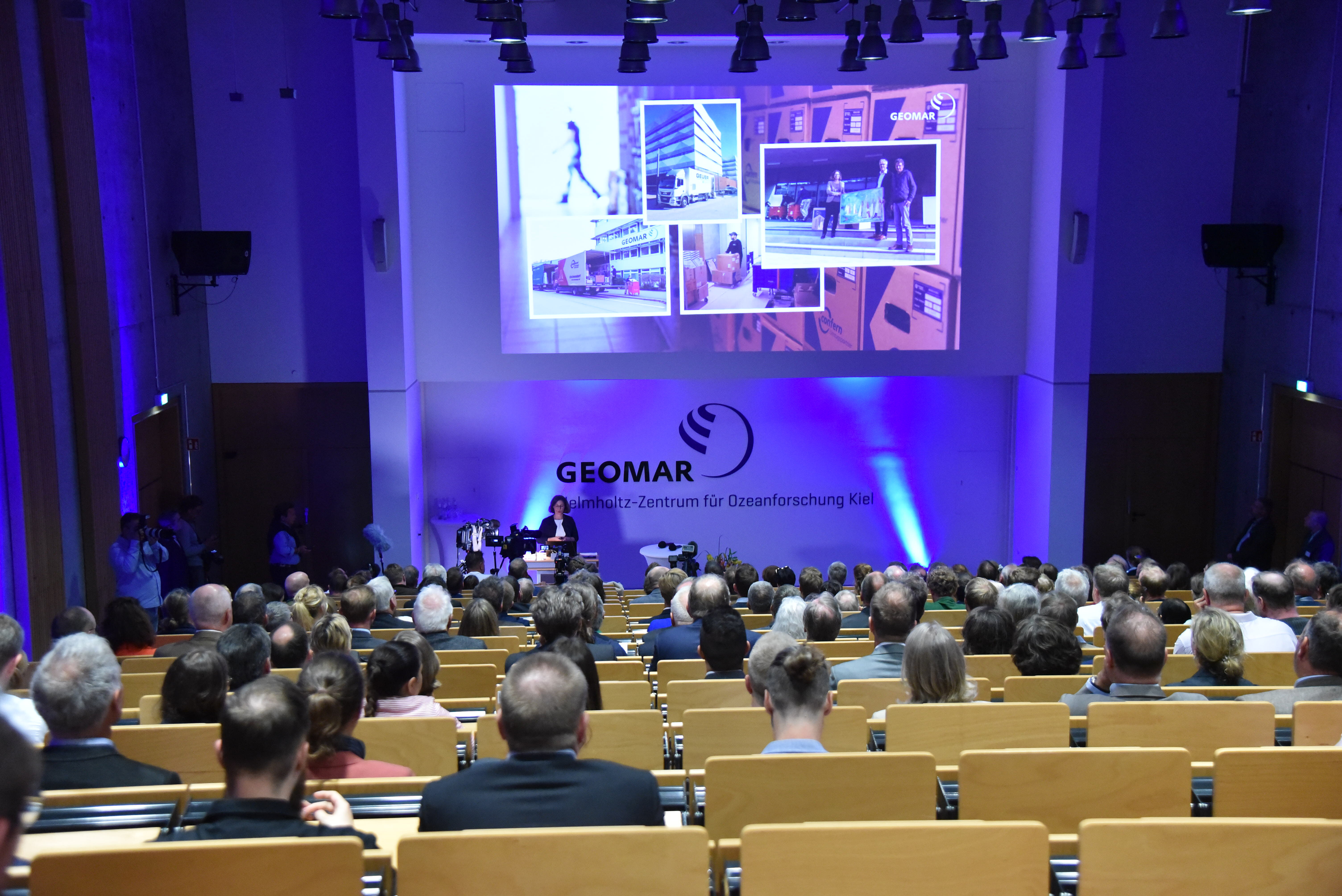 „Dieser Tag der Freude ist auch ein Tag des Rückblicks“, erklärt GEOMAR-Direktorin Professorin Dr. Katja Matthes. „Wir danken denjenigen, die das GEOMAR über die Jahrzehnte zu einer international führenden Einrichtung gemacht haben. Wir sind stolz auf die Bestnoten und die Motivation, die wir bei Begutachtungen erhalten und werden weiterhin mit Neugier und Gestaltungswillen die Entwicklung und Verzahnung der Kieler Meereswissenschaften vorantreiben. Für ihre fortwährende Unterstützung danken wir heute insbesondere dem Bundesministerium für Bildung und Forschung und dem Land Schleswig-Holstein.“