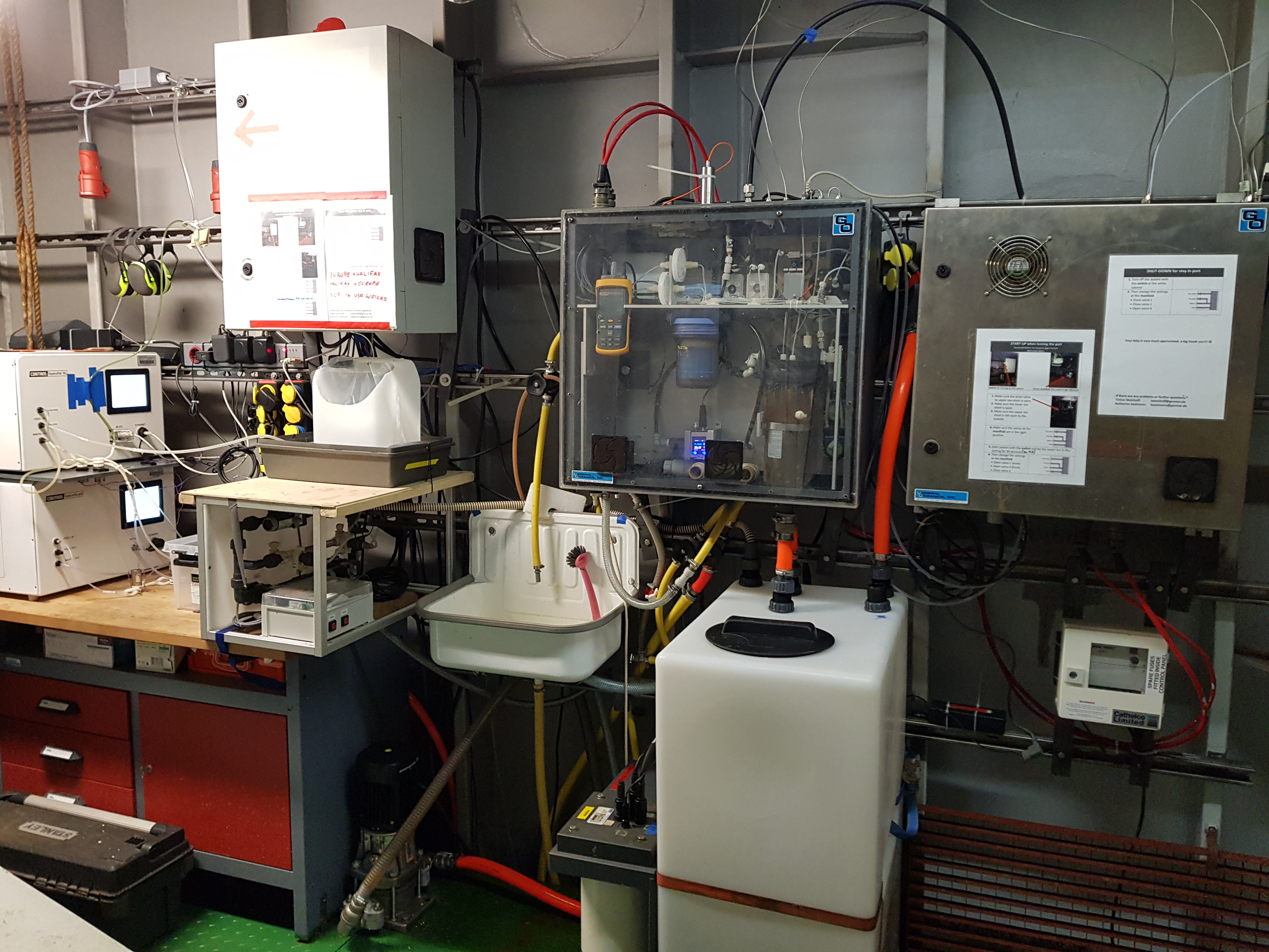 „Um auf die sich ändernden Gegebenheiten zu reagieren und unsere wichtigen Messungen fortzusetzen, haben wir stets rasch mit Reedereien und Flottenmanagern verhandeln müssen,“ erinnert sich Professor Körtzinger. Dazu bedürfe es eines intensiven Austauschs mit den Verantwortlichen an Bord, um einen Platz – meist im Maschinenraum des Schiffs – zu finden, an dem die mehrere Hunderttausend Euro teuren autonomen Messgeräte aufgestellt und mit kontinuierlich gepumpten Meerwasser und Atmosphärenluft versorgt werden können.