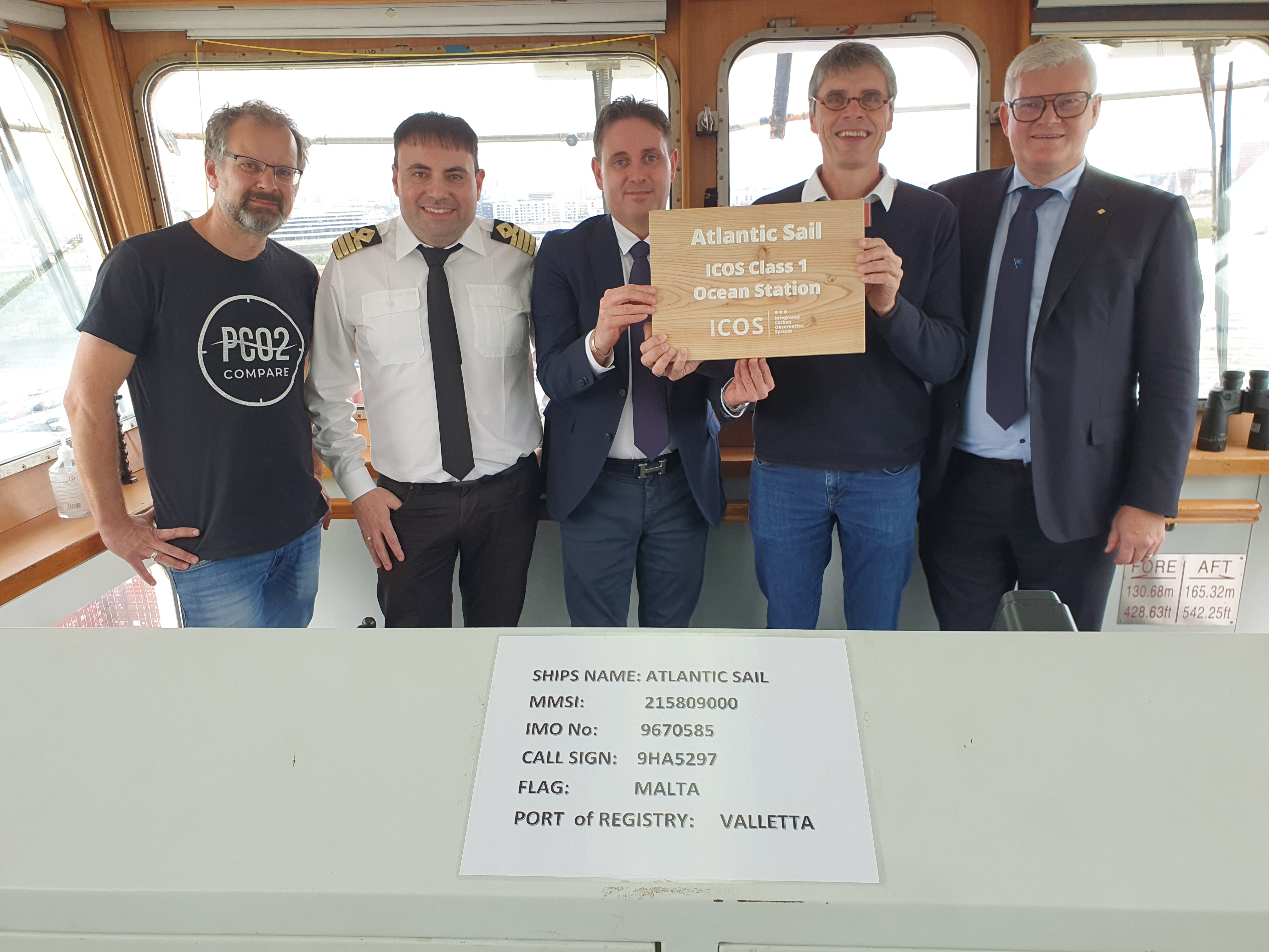 Das Handelsschiff MS ATLANTIC SAIL erhielt jetzt das „Class 1 Label“ des europäischen Langzeitbeobachtungsnetzes „Integrated Carbon Observation System“ (ICOS) für besonders hochwertige Messungen. Eine Holztafel aus finnischem Lärchenholz wurde im Hamburger Hafen übergeben und auf der Brücke des Schiffs angebracht. ICOS ist eine dezentrale europäische Forschungsinfrastruktur zur Beobachtung von Treibhausgasen in der Atmosphäre, im Ozean und an Land. Die von ICOS-Stationen im Dauerbetrieb erhobenen Daten werden einer aufwändigen Qualitätskontrolle unterzogen und im jährlich aktualisierten „Surface Ocean CO2 Atlas (SOCAT)“ veröffentlicht. Dieser gewaltige Datensatz mit bisher mehr als 35 Millionen Messungen gehört zu den Säulen des jährlich erscheinenden „Global Carbon Budget“ – die solideste Wissensbasis zum Verbleib des menschengemachten Kohlendioxids und dem Einfluss des Menschen auf das Klima.