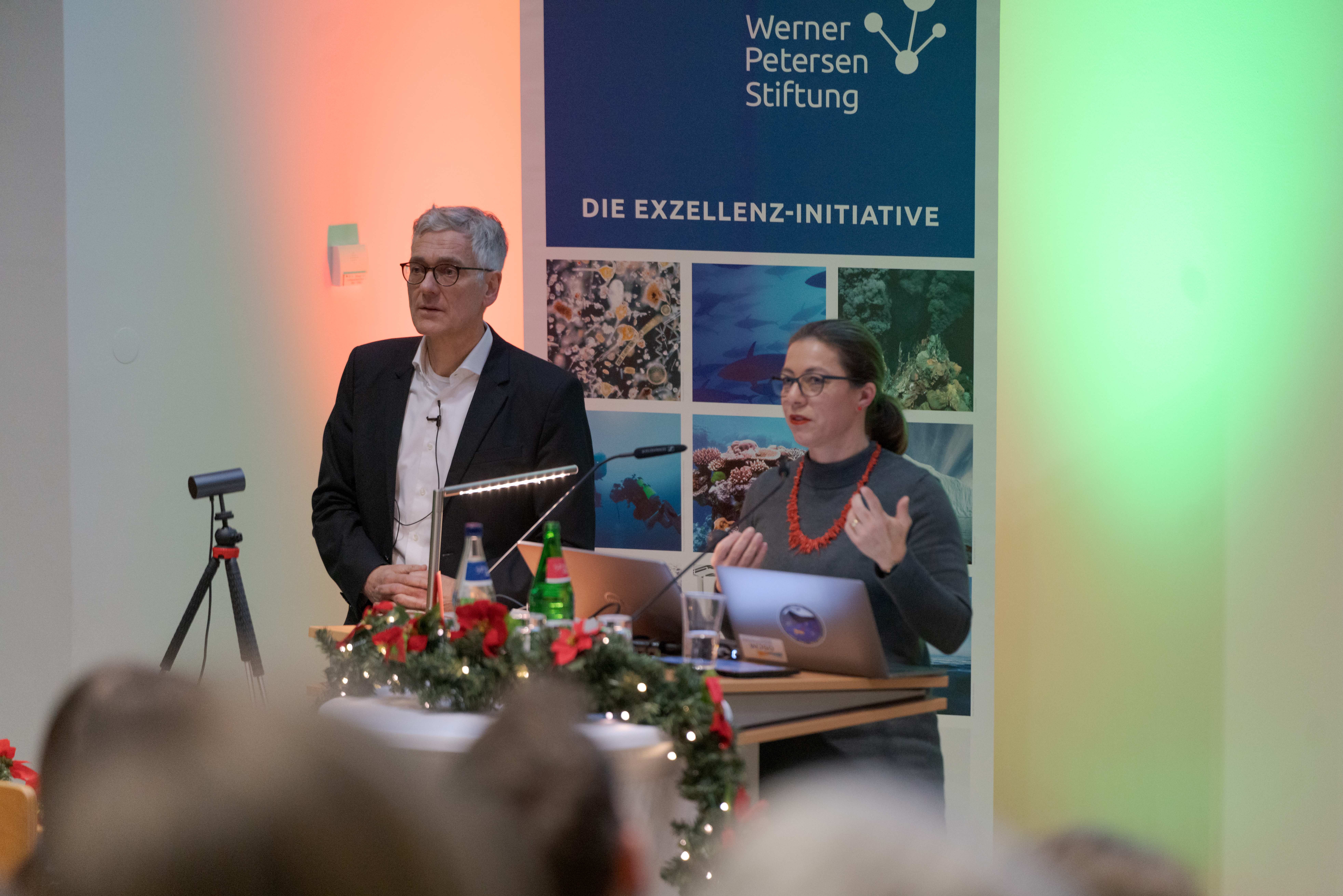 Gratulierten den Ausgezeichneten und dankten der Prof. Dr. Werner-Petersen-Stiftung: Frank Spiekermann, Verwaltungsdirektor und Professorin Dr. Katja Matthes, Direktorin des GEOMAR. Foto: Lukas Schröder