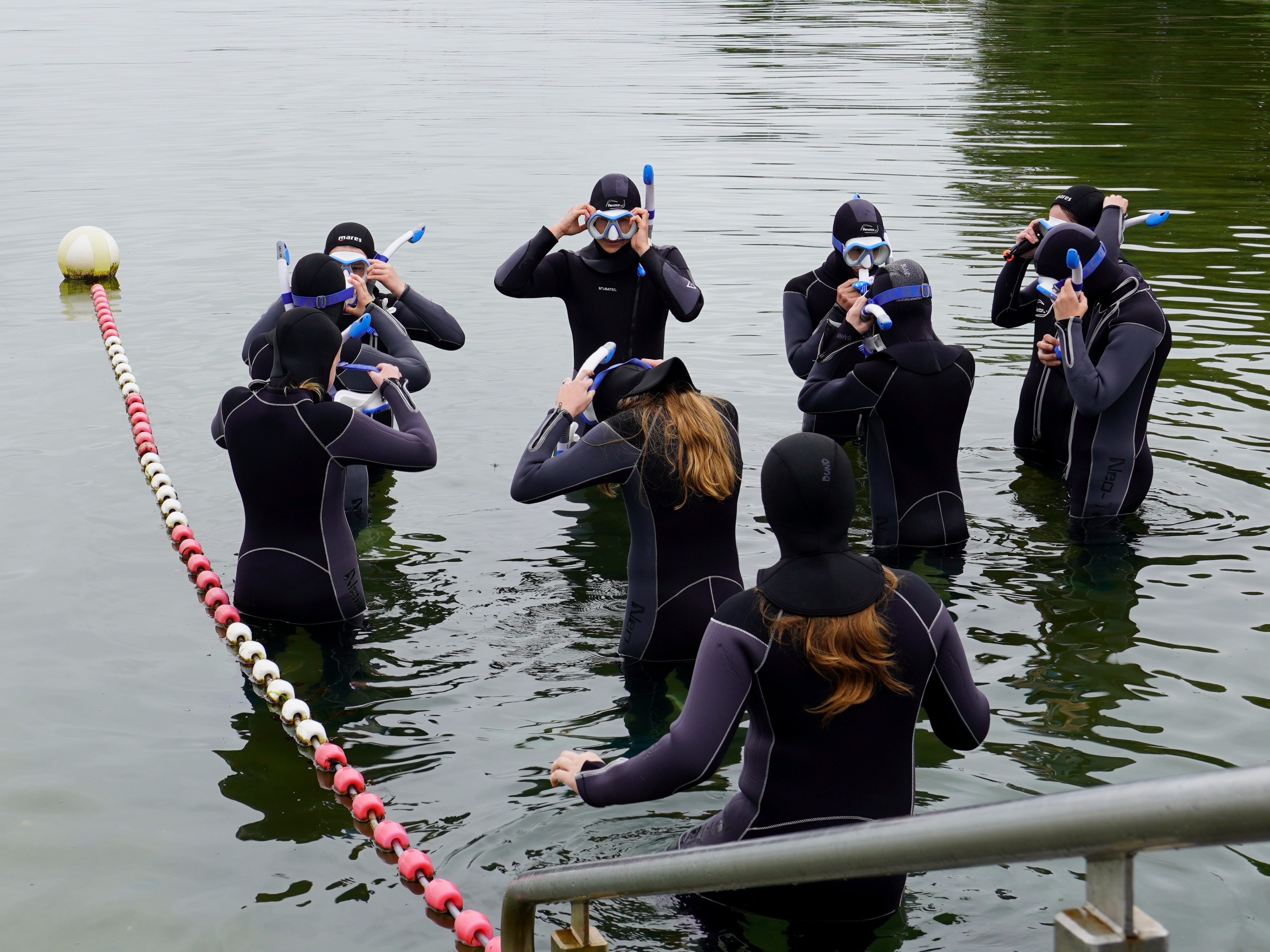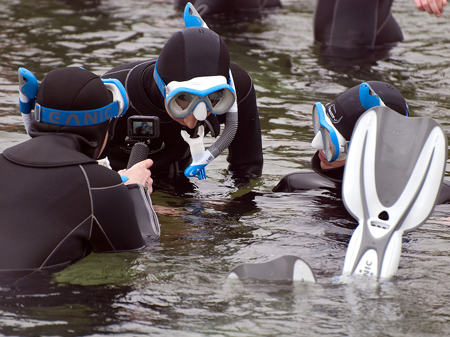 Das erste Untertauchen kostet ein wenig Überwindung. Foto: Maike Nicolai, GEOMAR
