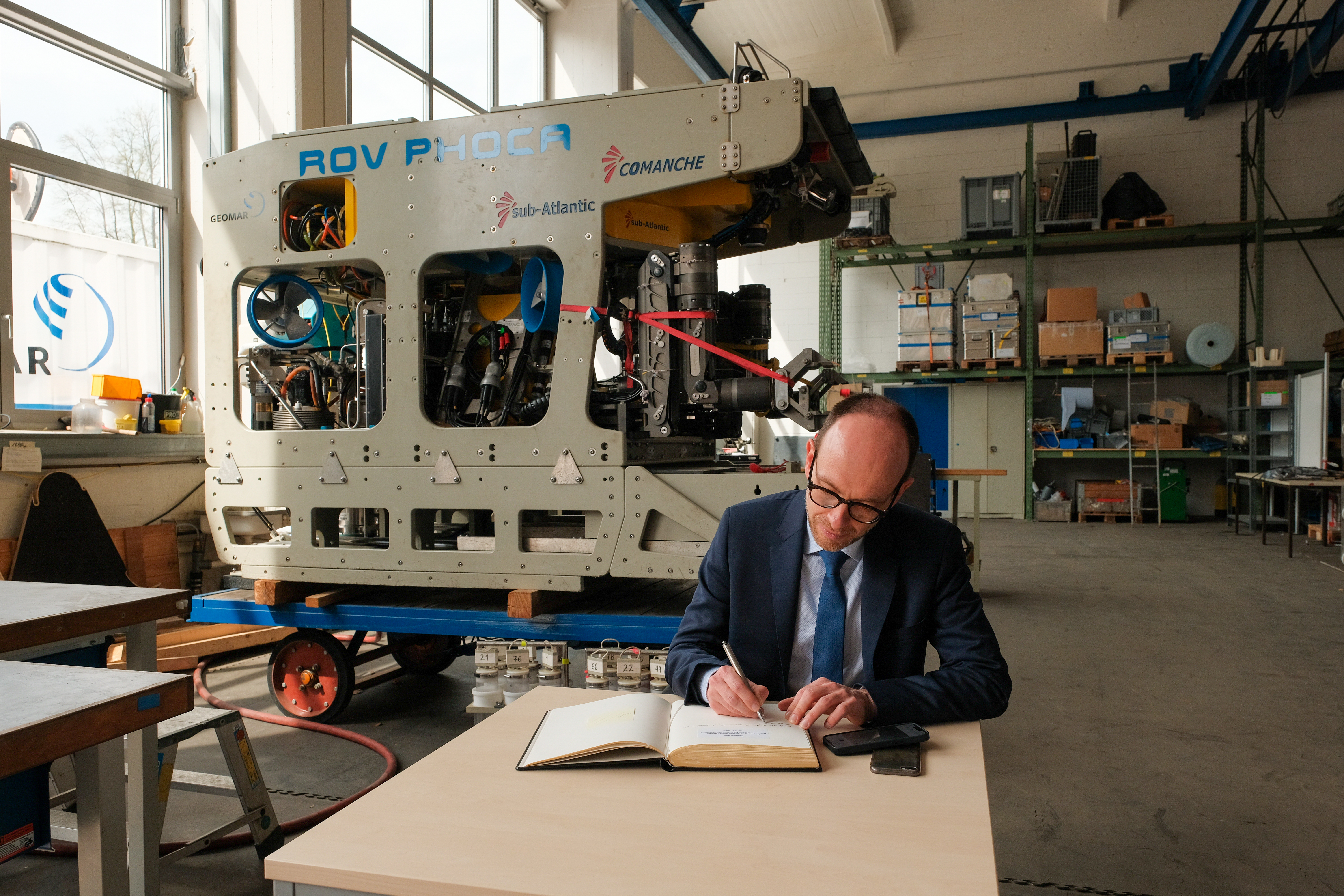 Ministerialdirektor Stefan Müller, neuer Vorsitzender des GEOMAR-Kuratoriums trägt sich ins Gästebuch ein. Foto: Sarah Kaehlert, GEOMAR