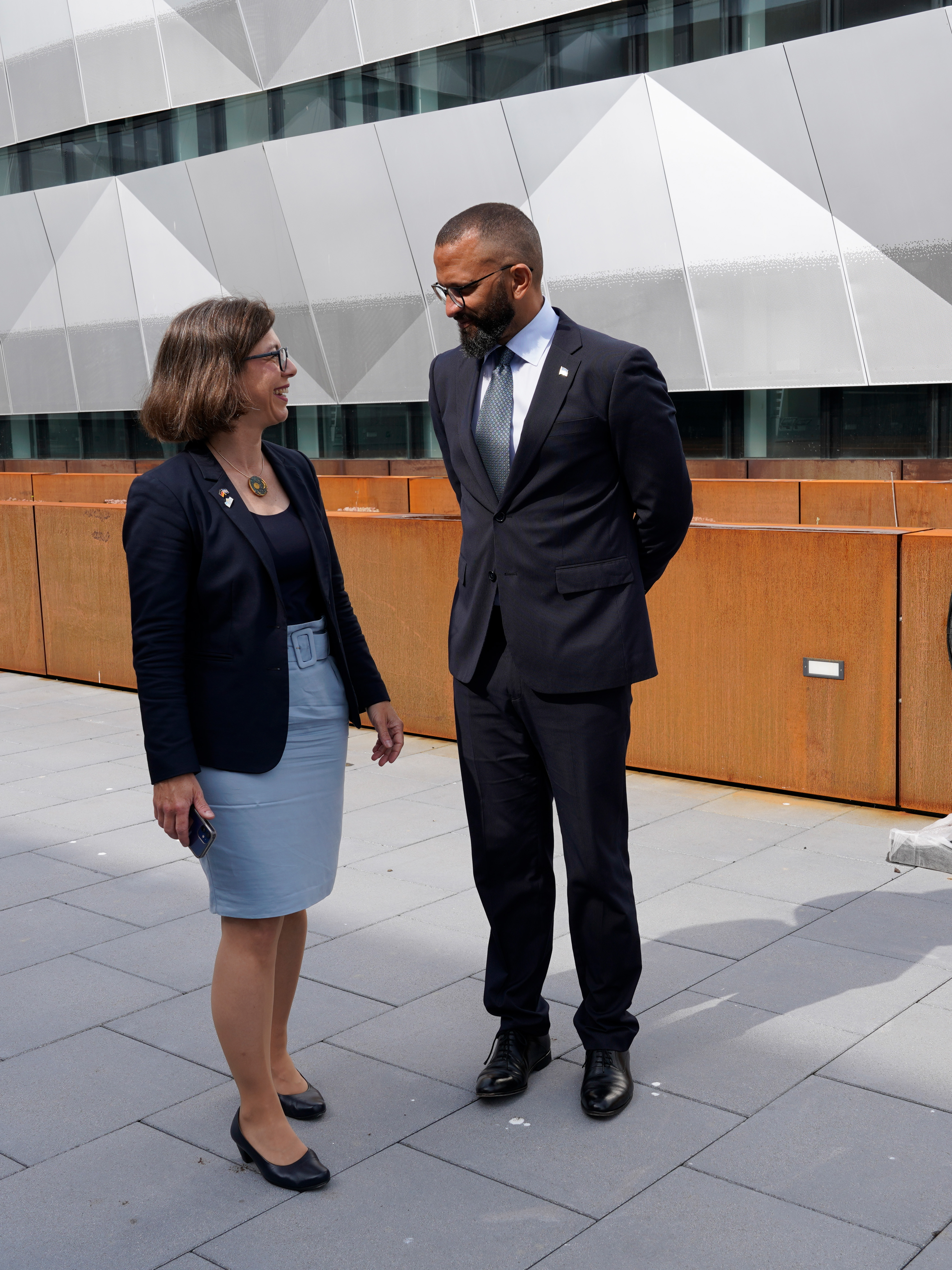 GEOMAR-Direktorin Professorin Dr. Katja Matthes und der Meeresminister der Republik Cabo Verde, Abraão Vicente, beim Rundgang durch den Neubau des GEOMAR auf dem Seefischmarkt. Foto: Maike Nicolai