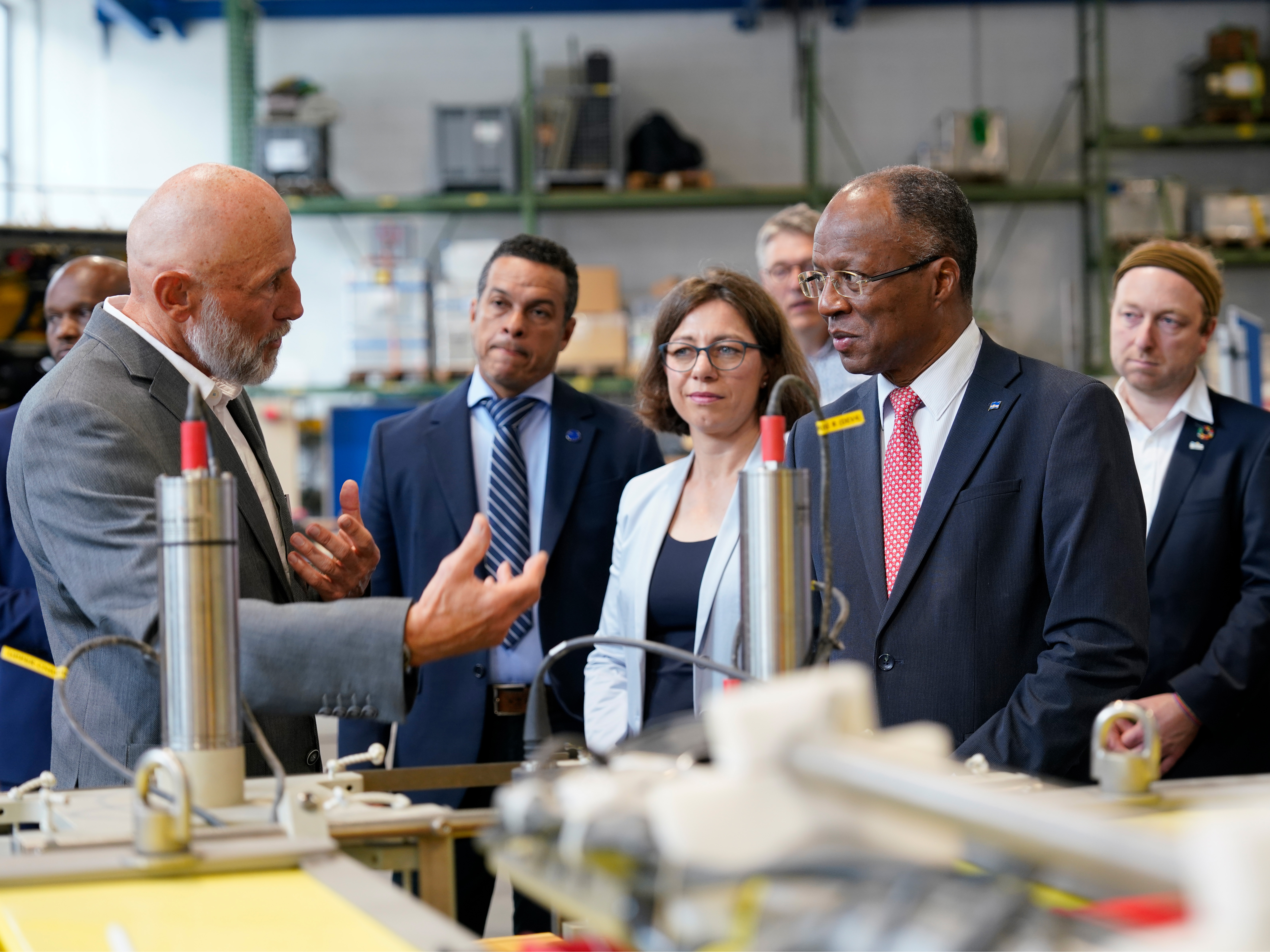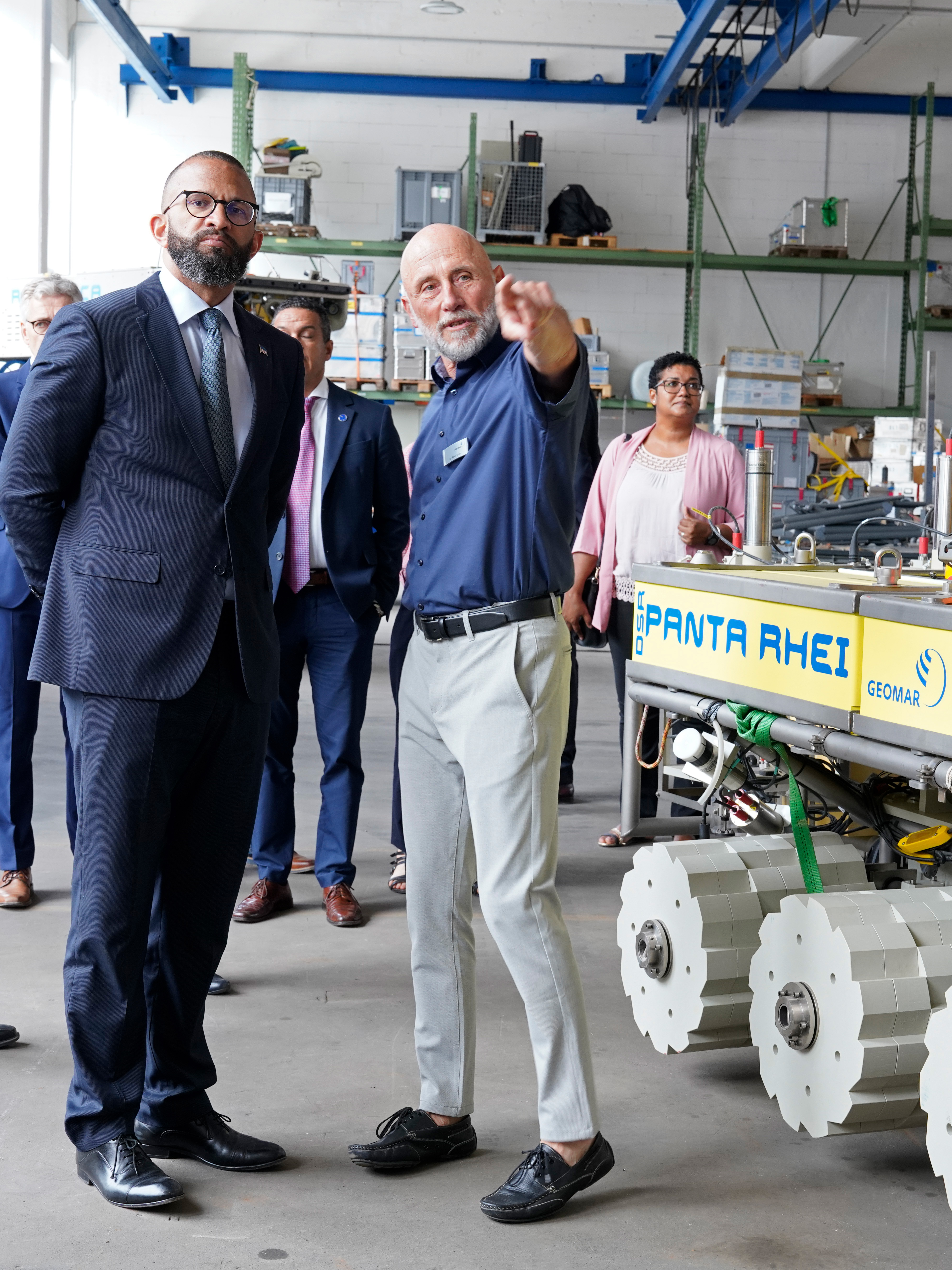 Dr. Peter Linke, Leiter des Technik- und Logistik-Zentrums stellt Premierminister José Correia e Silva die Infrastruktur des GEOMAR vor. Foto: Maike Nicolai, GEOMAR