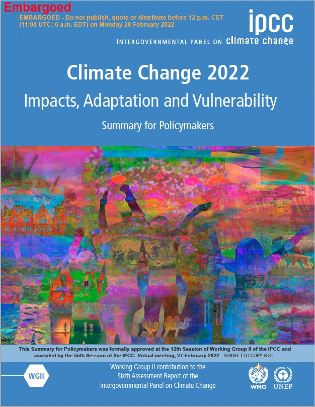 Titelmotiv des Beitrags der Arbeitsgruppe II des Weltklimarats IPCC zum Sechsten Sachstandsbericht (Ausschnitt)