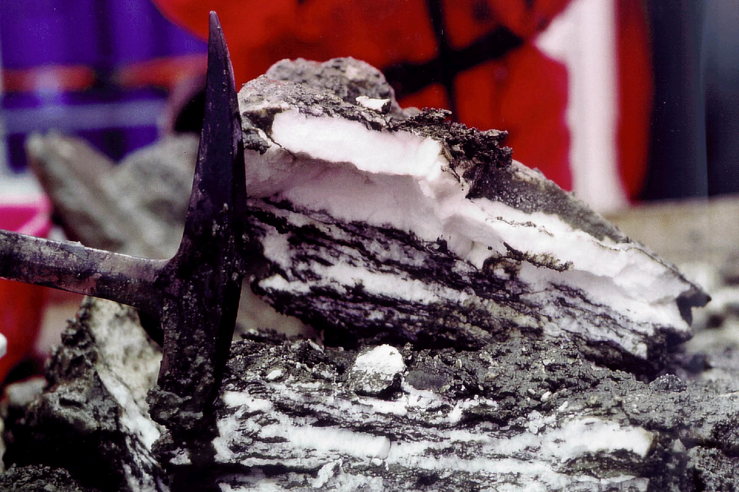 Sedimentbrocken mit Methanhydrat (Modell). Foto: Jan Steffen, GEOMAR