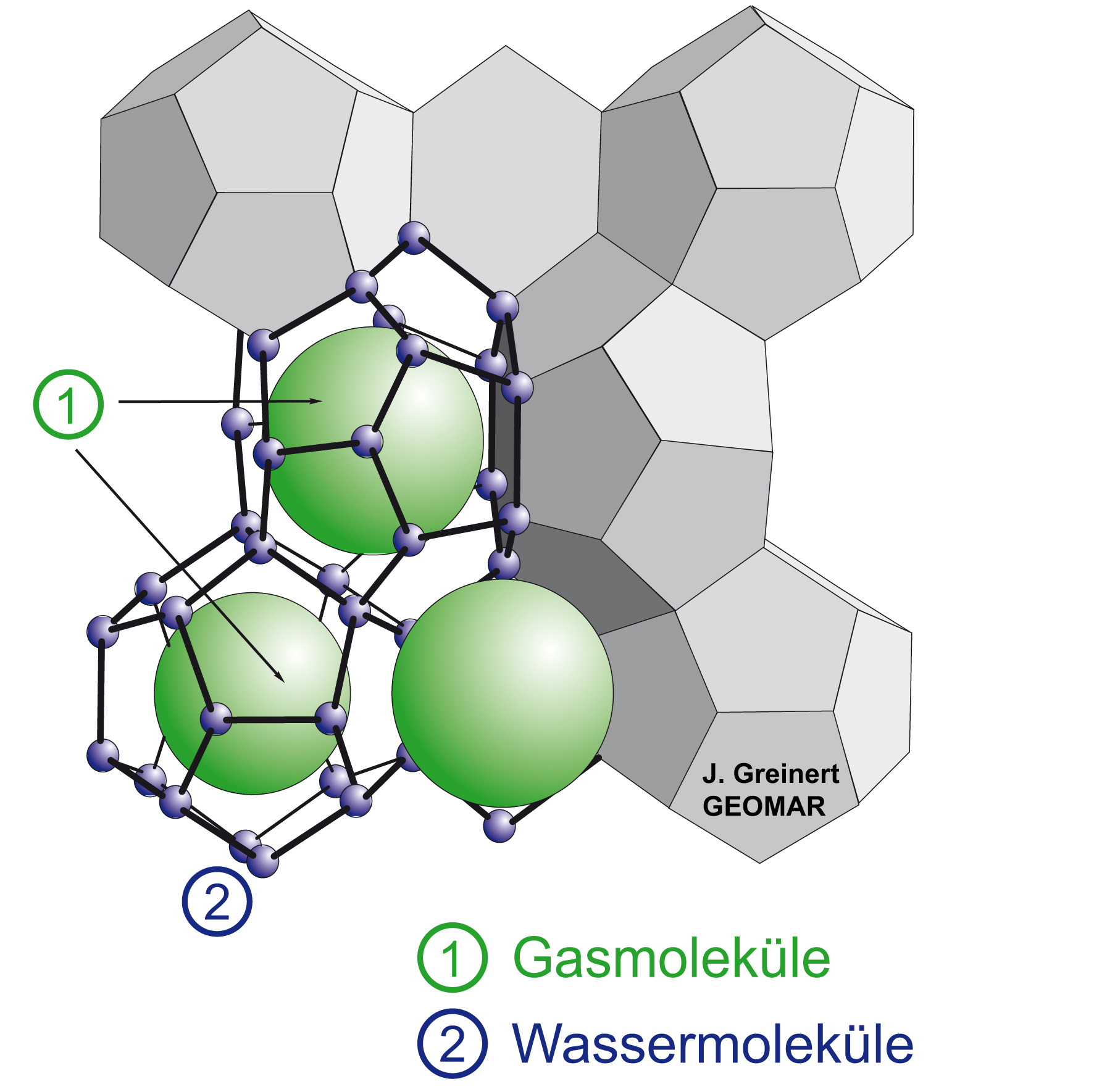 Struktur von Methanhydraten. Grafik: Jens Greinert, GEOMAR