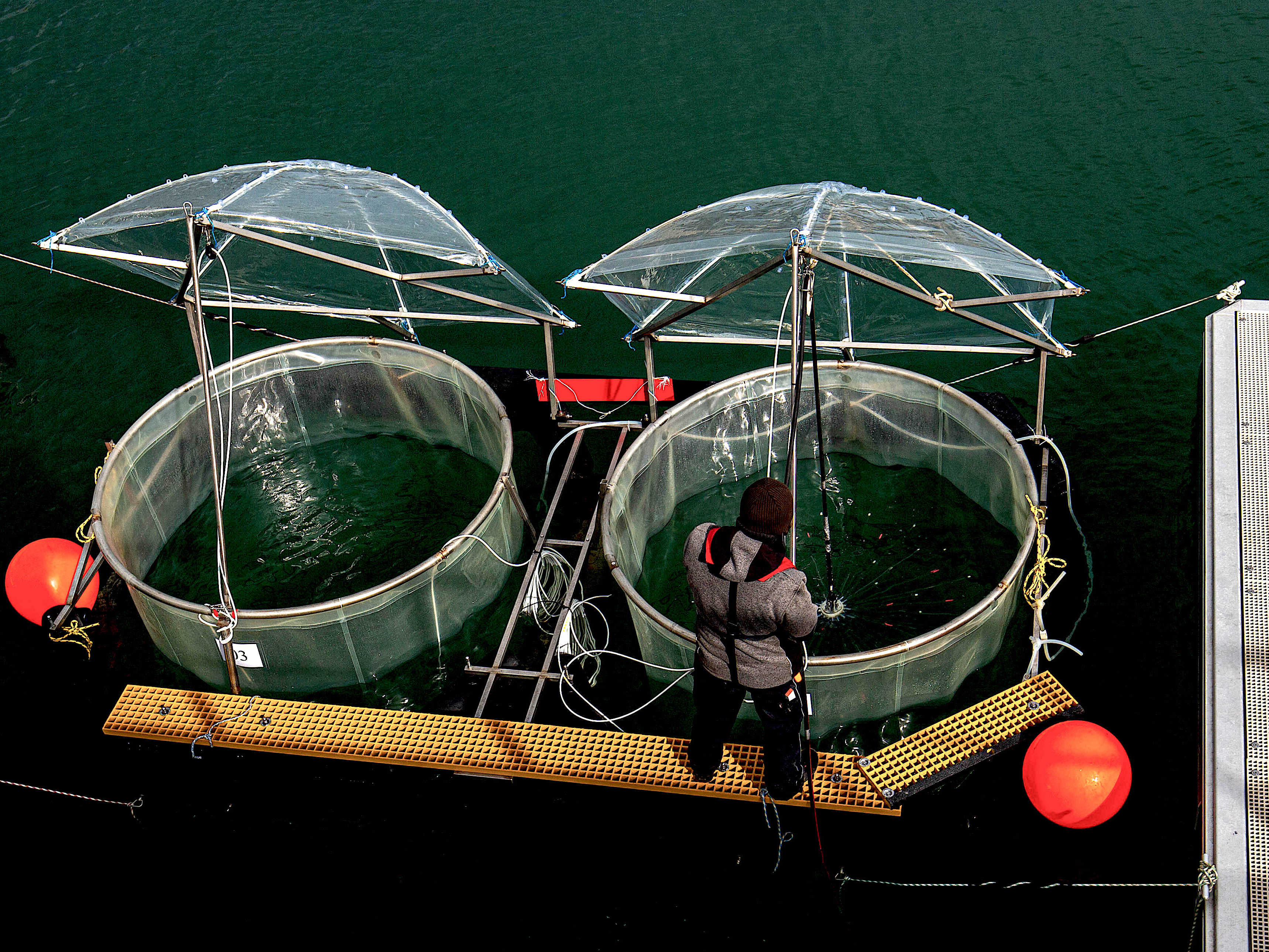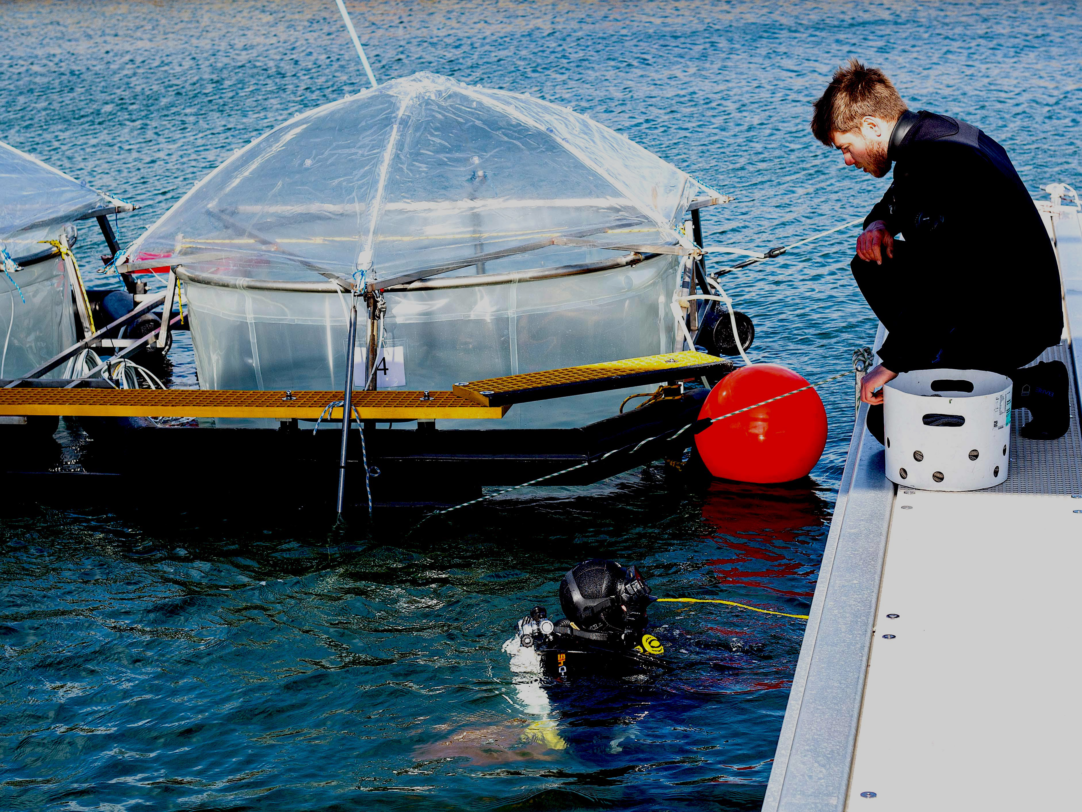 Die Mesokosmen bilden eine nach außen hin abgeschlossene Versuchswelt für Experimente unter möglichst natürlichen Umweltbedingungen. Foto: Michael Sswat, GEOMAR