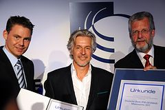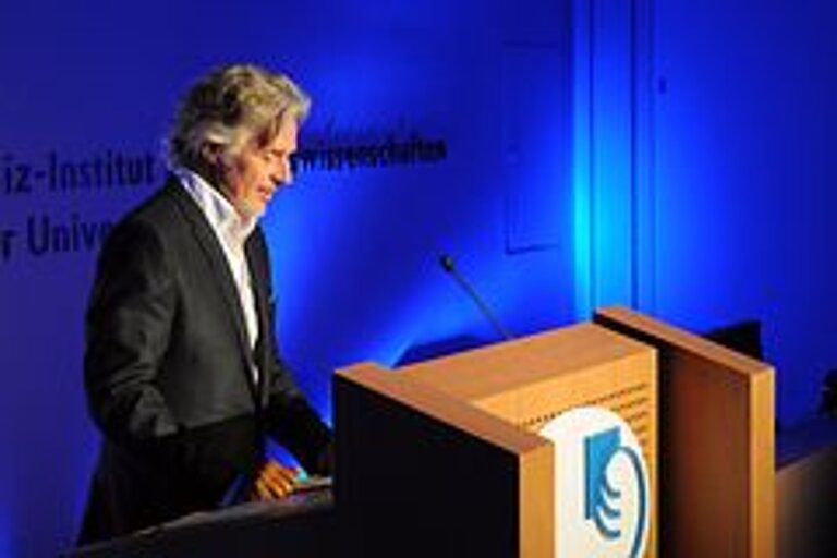 Auch Professor Peter Herzig, Direktor des IFM-GEOMAR, beglückwünschte den Preisträger und hob nochmals die besondere Zusammenarbeit mit Schätzing hervor: „Frank Schätzing hat sich intensiv mit den komplexen Themen der Meeresforschung auseinandergesetzt und diese solide Basis erfolgreich für seine Arbeiten genutzt. Er wollte die Zusammenhänge genau verstehen, auch wenn er sich mit Recht die schriftstellerische Freiheit nahm, die Grenzen von Realität und Fiktion zu verwischen. Gerade deshalb ist die Außenwirkung für das IFM-GEOMAR immer sehr positiv gewesen und hat uns in der Öffentlichkeit zu einem nie dagewesenen Bekanntheitsgrad verholfen“.