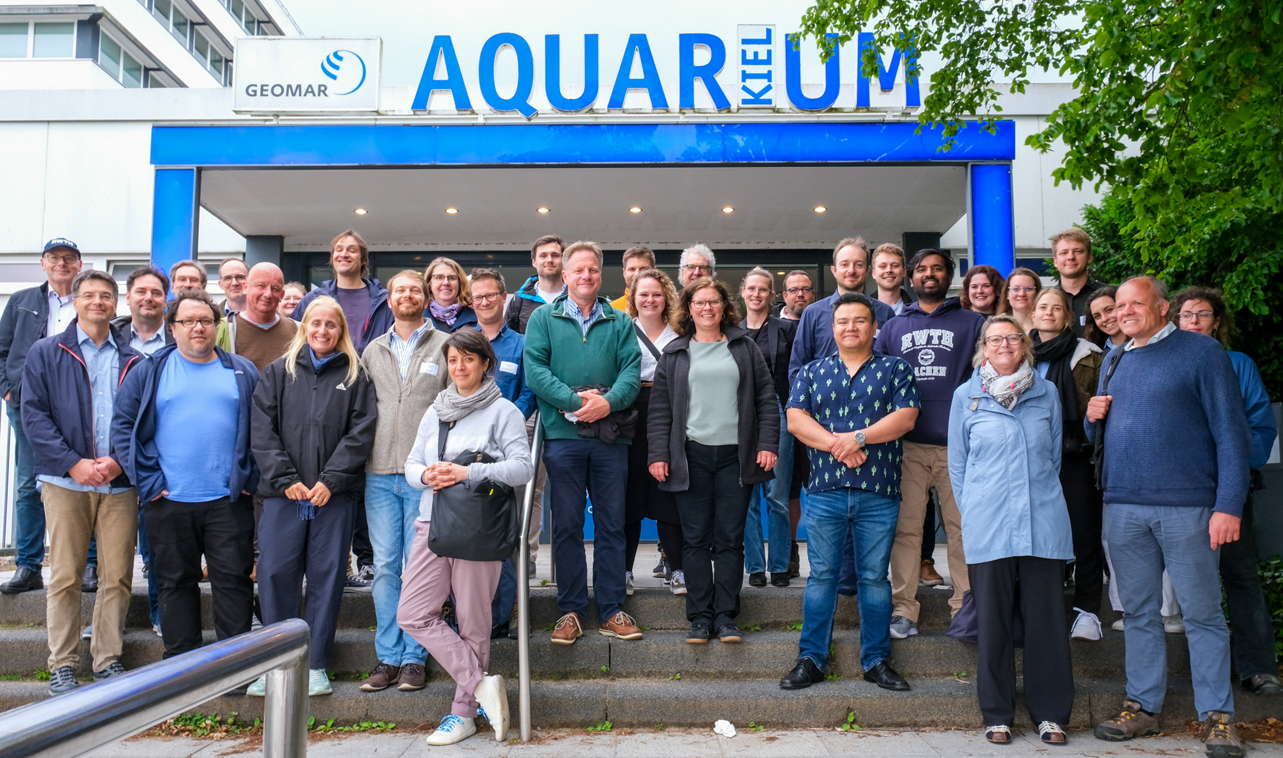 Erstes Treffen in Kiel: Die Teilnehmenden des MULTI-MAREX-Verbundtreffens vor dem Aquarium GEOMAR. Foto: Andrea Geipel
