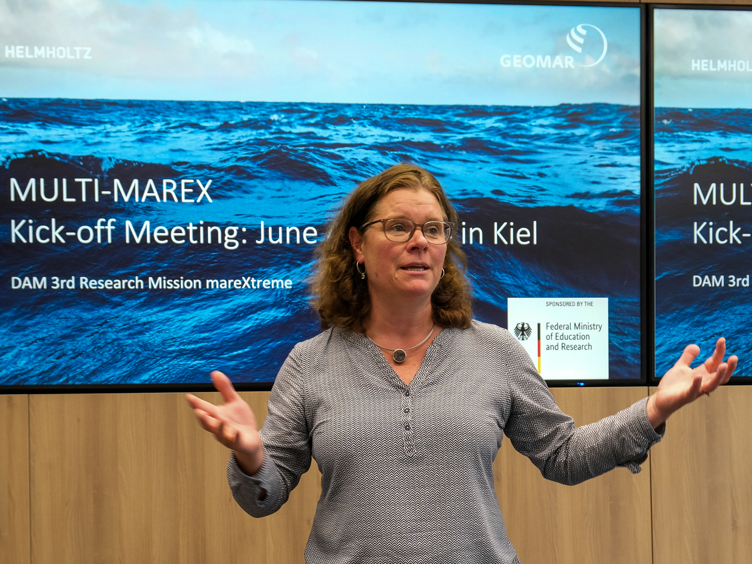 Professorin Heidrun Kopp eröffnet das erste Verbundtreffen von MULTI-MAREX am GEOMAR in Kiel. Foto: Andrea Geipel