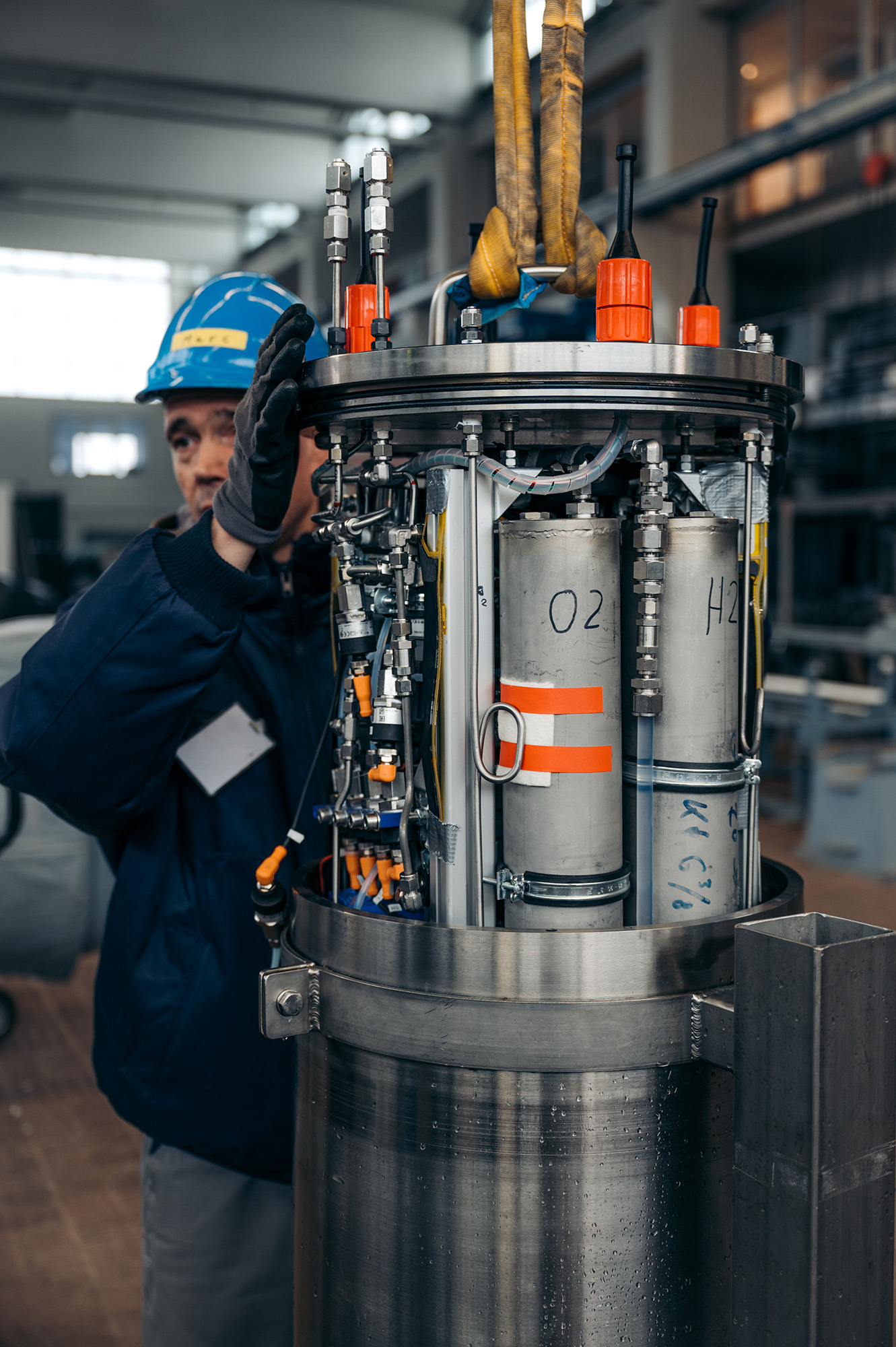 Deshalb ist es aus Sicht von Sascha Flögel unabdingbar, deutlich größere Energiespeicher zum Einsatz zu bringen, um räumlich und auf langen Zeitskalen (4D-Ozeanbeobachtung) zu operieren. Im Rahmen des vom Bundeswirtschaftsministerium geförderten Projektes ARIM-FUEL (Entwicklung einer Brennstoffzelle für submarine Langzeit-Anwendungen und deren Erprobung in Feldstudien) wurde am GEOMAR, zusammen mit dem Zentrum für Sonnenenergie und Wasserstoff-Forschung, Ulm (ZSW) eine tiefseetaugliche Brennstoffzelle mit Zwischenspeicher entwickelt, die den Anforderungen moderner Observatorien und robotischer Anwendungen genügt. „Ein derartiges System war bisher nicht verfügbar“, sagt Dr. Flögel. Das im Rahmen des Projektes entwickelte System verfügt über eine Kapazität von etwa 120 Kilowattstunden und leistet bis zu einem Kilowatt. Damit verfügt dieser Ansatz über die zehnfache Kapazität bisheriger Lösungsansätze, die ihre Energie aus Primärzellen oder Akkus beziehen. Auch zur nachhaltigeren Ozeanbeobachtung leistet dieses Projekt einen wertvollen Beitrag, da hier bei jedem Einsatz mehr als 13.000 Primärbatterien eingespart werden können, die bei konventionellen Systemen anfallen.