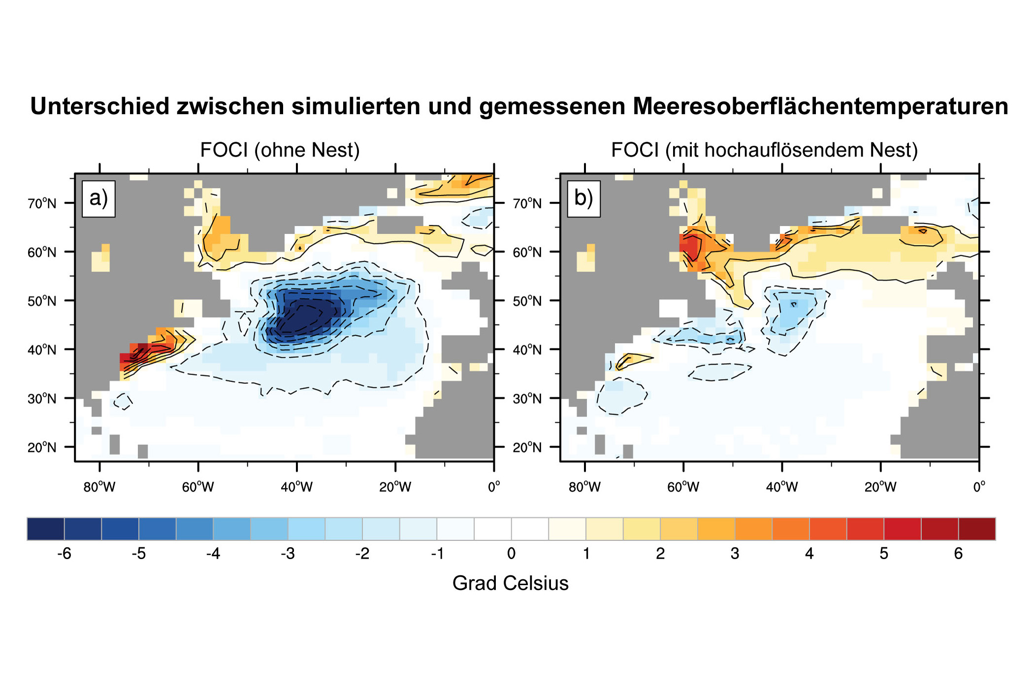 „Mit dem neuen System können wir sehr viele Fragestellungen auf ganz unterschiedlichen Zeitskalen untersuchen“, erläutert Professor Dr. Arne Biastoch, Leiter der Forschungseinheit Ozeandynamik am GEOMAR. „Wir haben das System zunächst standardisierten Basistests unterzogen“, so der Ozeanograph weiter. „Wir mussten herausfinden, ob das Modellsystem in der Lage ist, das beobachtete Klima und die bekannten Ozeanströmungen nachzubilden. Erst wenn dies innerhalb enger Fehlergrenzen erfolgreich ist, kann das System auch für die Untersuchung unbekannter Phänomene oder für Entwicklungen zukünftiger Klimazustände eingesetzt werden“. Die Ergebnisse, die jetzt in der internationalen Fachzeitschrift Geoscience Model Development publiziert wurden, sind sehr vielversprechend. „Besonders unser spezielles Knowhow, das Ozeanmodell regional mit sehr hoher Auflösung zu betreiben, verbessert die Ergebnisse erheblich und verringert beispielsweise sonst übliche Modellfehler wie Abweichungen der Meeresoberflächentemperaturen im Golfstromsystem“, so Professor Biastoch. Ferner sind mit FOCI Konfigurationen mit bisher unerreichten räumlichen Auflösungen von bis zu einem Kilometer im Ozean möglich.