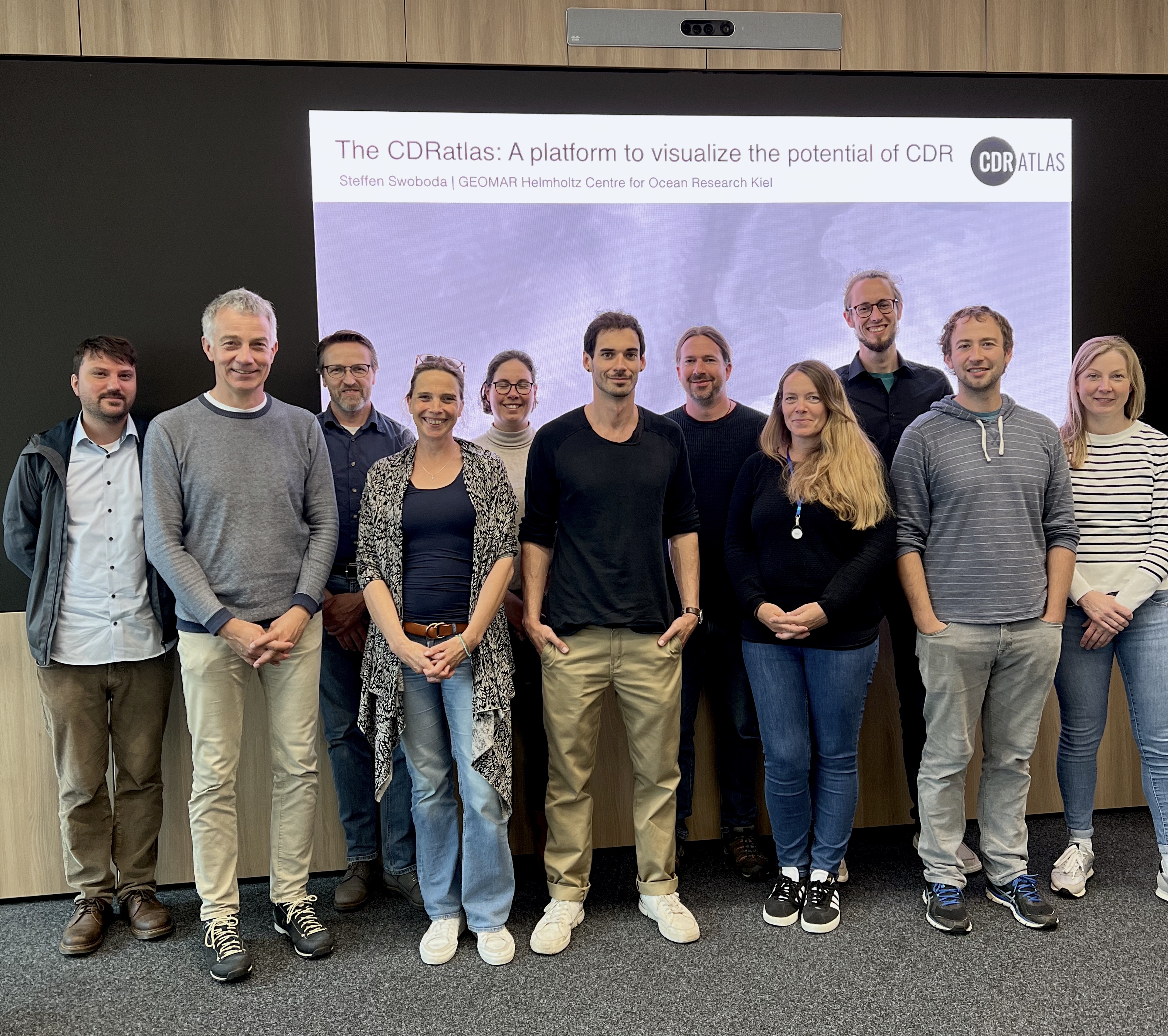 Das Team und kooperierende Partner des CDRatlas beim Kick-Off-Meeting: Jonas Hunfeldt-Häutle, Prof. Dr. Andreas Oschlies, Prof. Dr. Martin Zimmer, Ulrike Bernitt, Dr. Nadine Mengis, Dr. Steffen Swoboda, Claas Faber, Dr. Viola Schaber, Florian Klabes, Stefan Lingner und Dr. Esther Rickert (v.l.n.r.) Foto: Christian-Benjamin Sarpey, GEOMAR