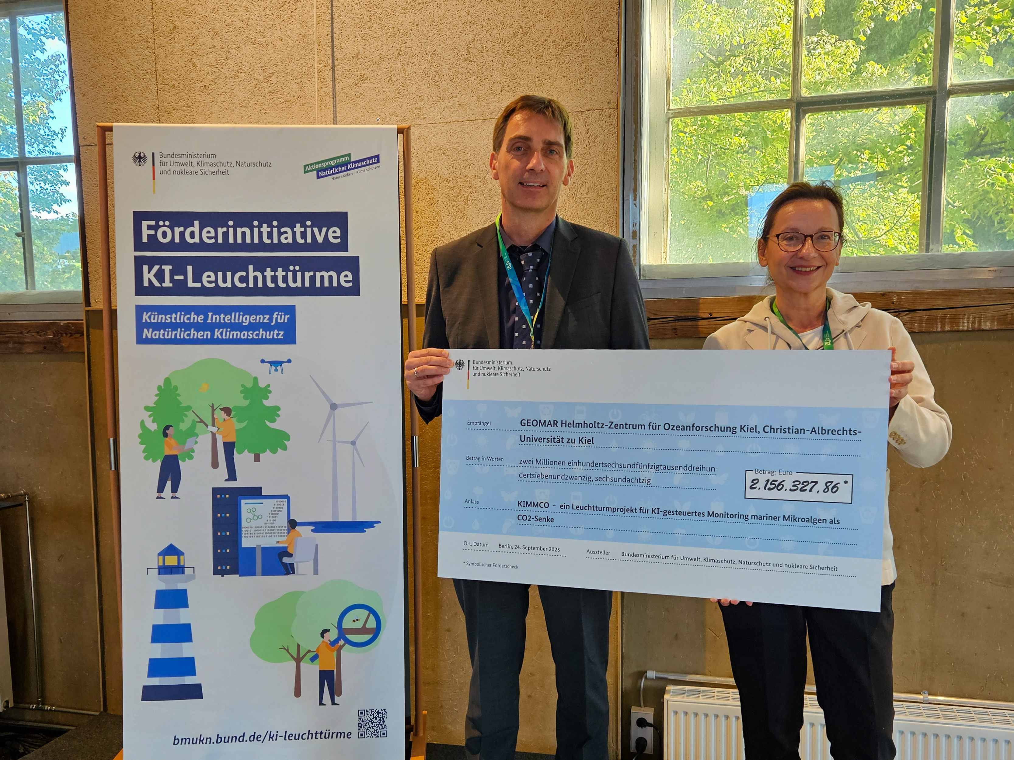 Phytoplankton im Ozean ist winzig, aber von globaler Bedeutung: Es macht nur etwa ein bis zwei Prozent der pflanzlichen Biomasse aus und ist dennoch für fast 40 Prozent der weltweiten CO2-Aufnahme durch Photosynthese verantwortlich. Ein neues Projekt am GEOMAR und an der CAU nutzt nun KI, um die Rolle des Phytoplanktons für den Klimaschutz präziser und schneller zu erfassen. Ziel ist es, die natürlichen Klimaschutzfunktionen der Meere besser zu verstehen und zu stärken. Das Projekt wird mit rund 2.160.000 Euro aus der Förderinitiative „KI-Leuchttürme für Umwelt, Klima, Natur und Ressourcen“ gefördert Dafür hat heute die Parlamentarische Staatssekretärin im Bundesumweltministerium (BMUKN), Rita Schwarzelühr-Sutter in Berlin den Förderbescheid übergeben.