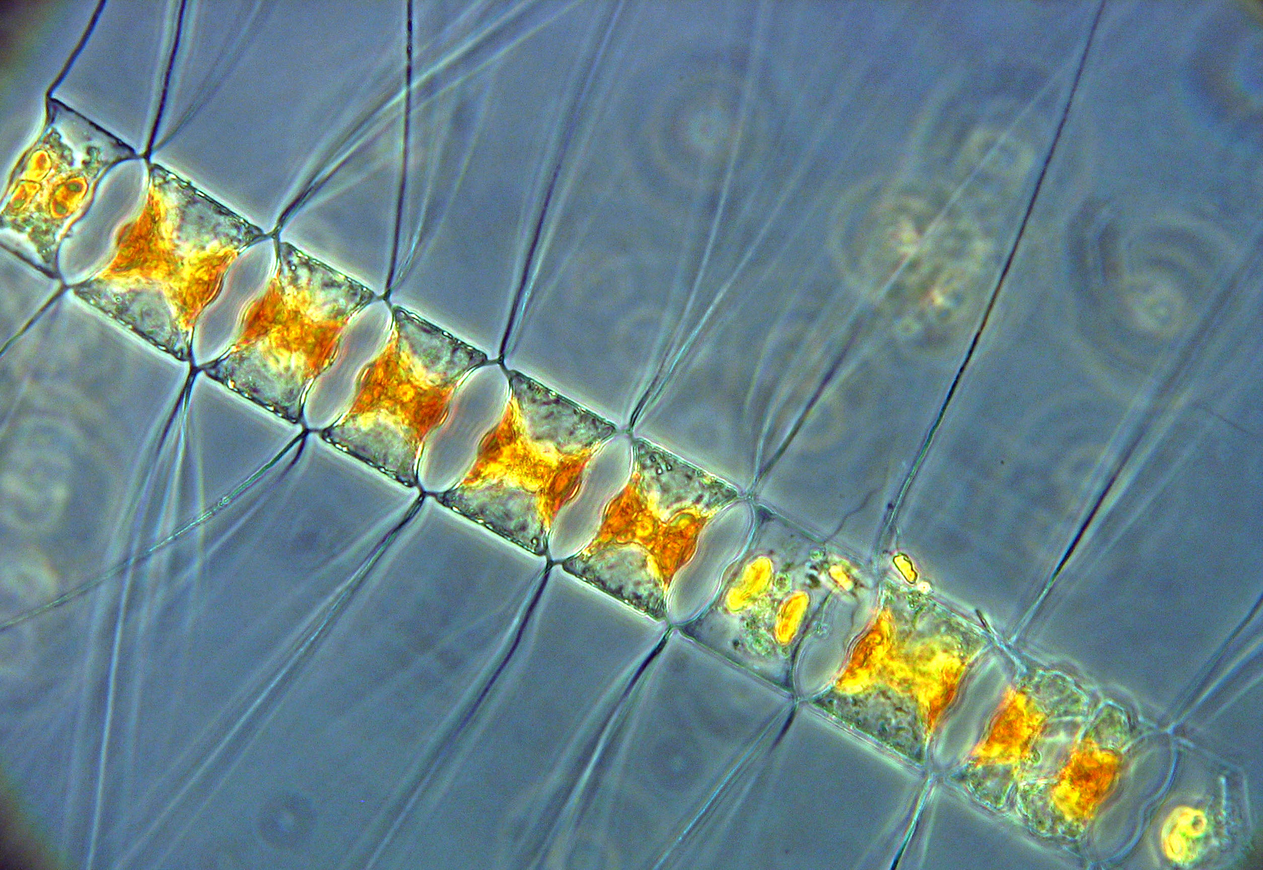 Als Folge der Ozeanversauerung lösen sich die Siliziumschalen von Kieselalgen langsamer auf. Dies ist kein Vorteil – denn dadurch sinken Diatomeen in tiefere Wasserschichten als bisher, bevor sie sich chemisch lösen und wieder in Kieselsäure umgewandelt werden. Folglich wird der Nährstoff dem globalen Kreislauf zunehmend entzogen und somit in der lichtdurchfluteten Oberflächenschicht knapper, wo er für die Bildung neuer Schalen benötigt wird. Dies bedingt einen Rückgang der Kieselalgen, so die Wissenschaftler:innen in ihrer aktuellen Publikation. Diatomeen tragen 40 Prozent der Produktion von pflanzlicher Biomasse im Ozean bei und sind Grundlage vieler mariner Nahrungsnetze. Sie sind auch der Hauptantrieb für die biologische Kohlenstoffpumpe, die CO2 in den tiefen Ozean transportiert und dort langfristig speichert.