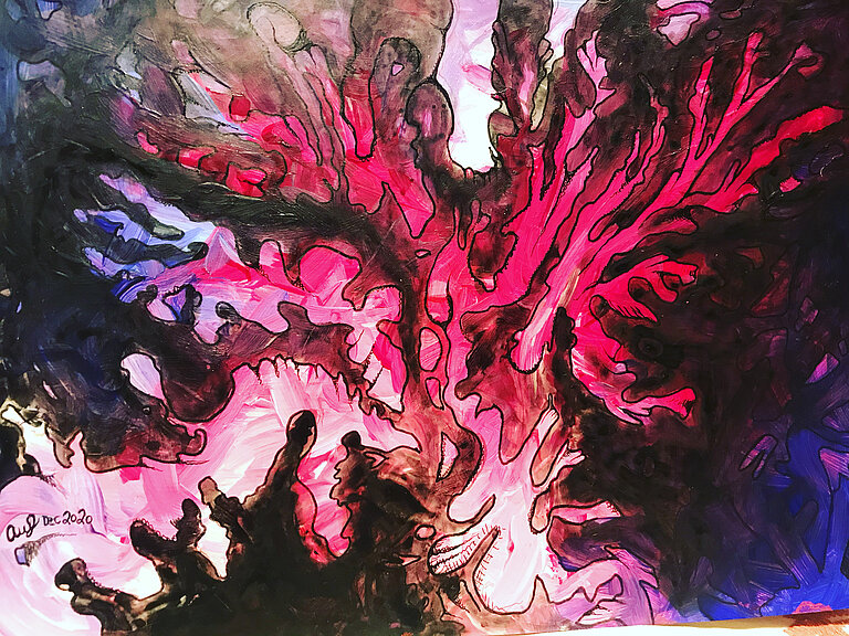 Die digitale Galerie ist eine Einladung an alle, die Welt der Wissenschaft von einer ganz anderen Seite kennenzulernen. Es handelt sich bei der virtuellen Kunstausstellung um eine Kooperation zwischen dem GEOMAR und den drei Ozeanprojekten CUSCO, EVAR und REEBUS. Die gesamte Belegschaft des GEOMAR, von Wissenschaft bis Verwaltung, wurde dazu aufgerufen, ihrer Kreativität eine Bühne zu geben und ihre Kunst für die Online-Ausstellung einzureichen. Aus den mehr als 20 hochwertigen Beiträgen wurde eine Auswahl getroffen und in einer Online-Ausstellung visualisiert. Die Ausstellung verfolgt das Ziel, neue Verbindungen zwischen Mitarbeitenden der zwei durch die Förde getrennten Institutsstandorte zu schaffen und einen eindrucksvollen und ansprechenden Zugang zum Thema Wissenschaft für Menschen außerhalb des Zentrums zu eröffnen.