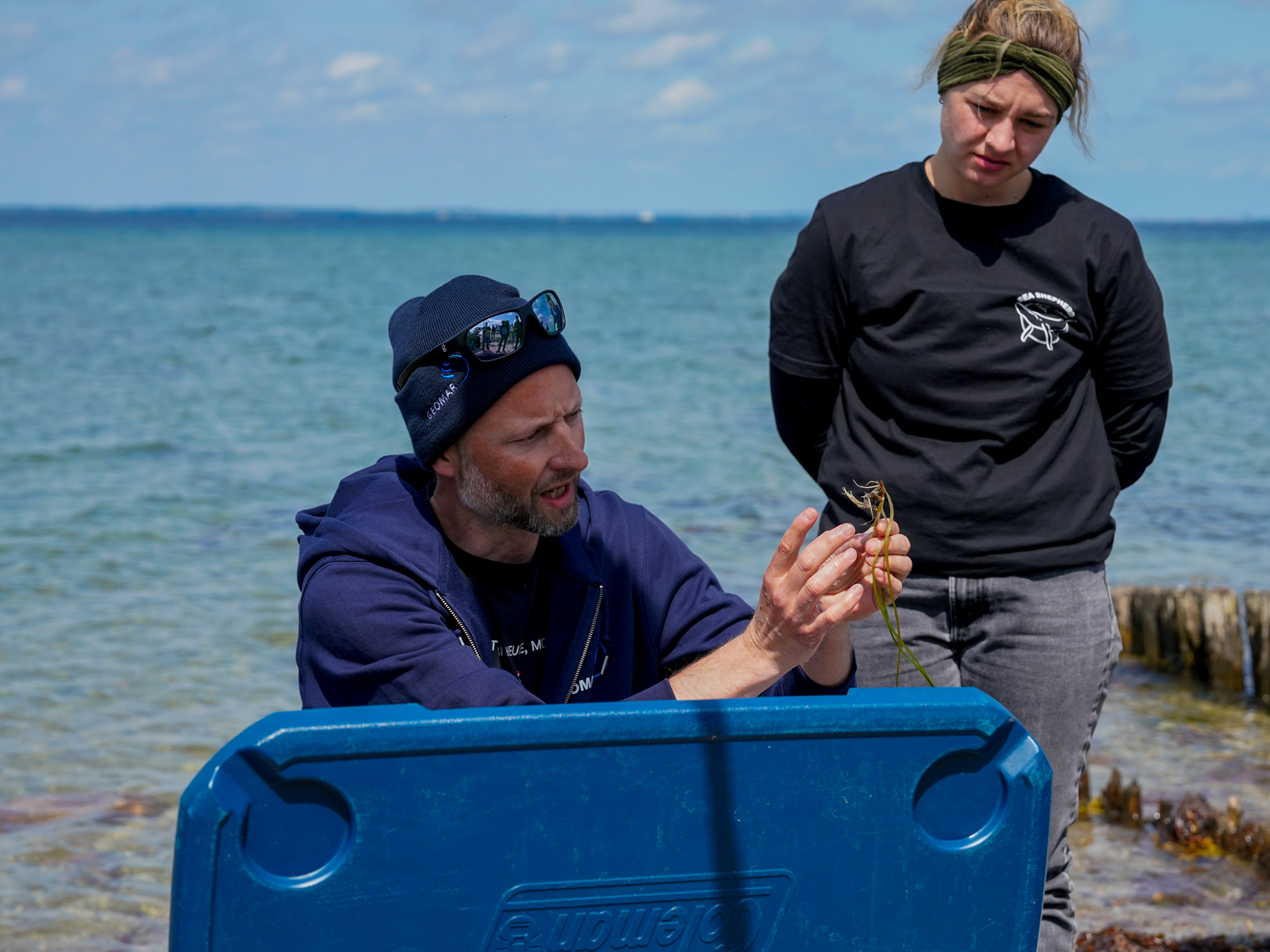Naturschutz zum Mitmachen: Christian Lieberum (l.) koordiniert am GEOMAR das Citizen Science Projekt zur Renaturierung von Seegraswiesen in der Ostsee.