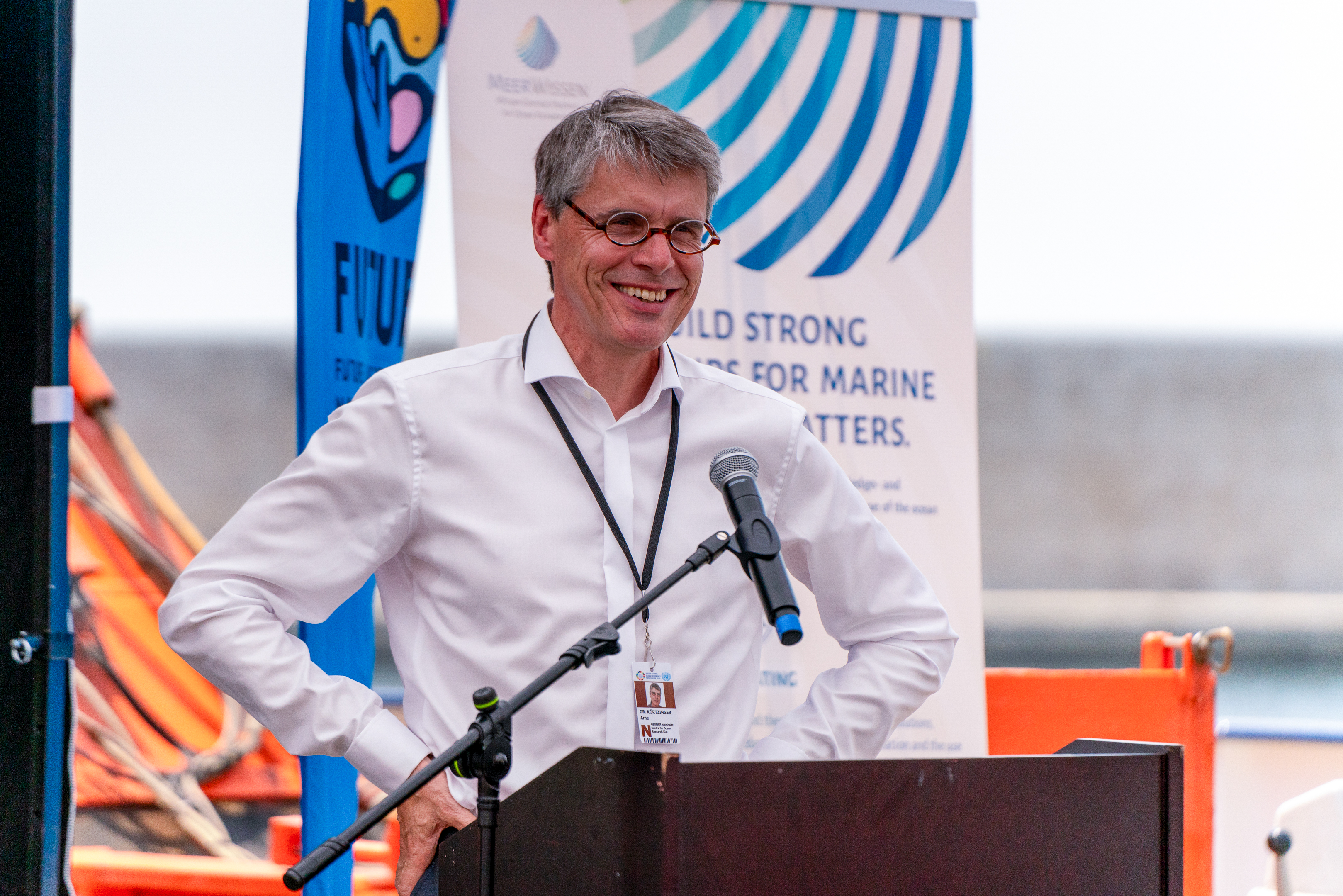Prof. Dr. Arne Körtzinger bei einem Vortrag über das Forschungsprogramm FUTURO im Rahmen der UN-Ozeankonferenz (UNOC) im Juni 2025.