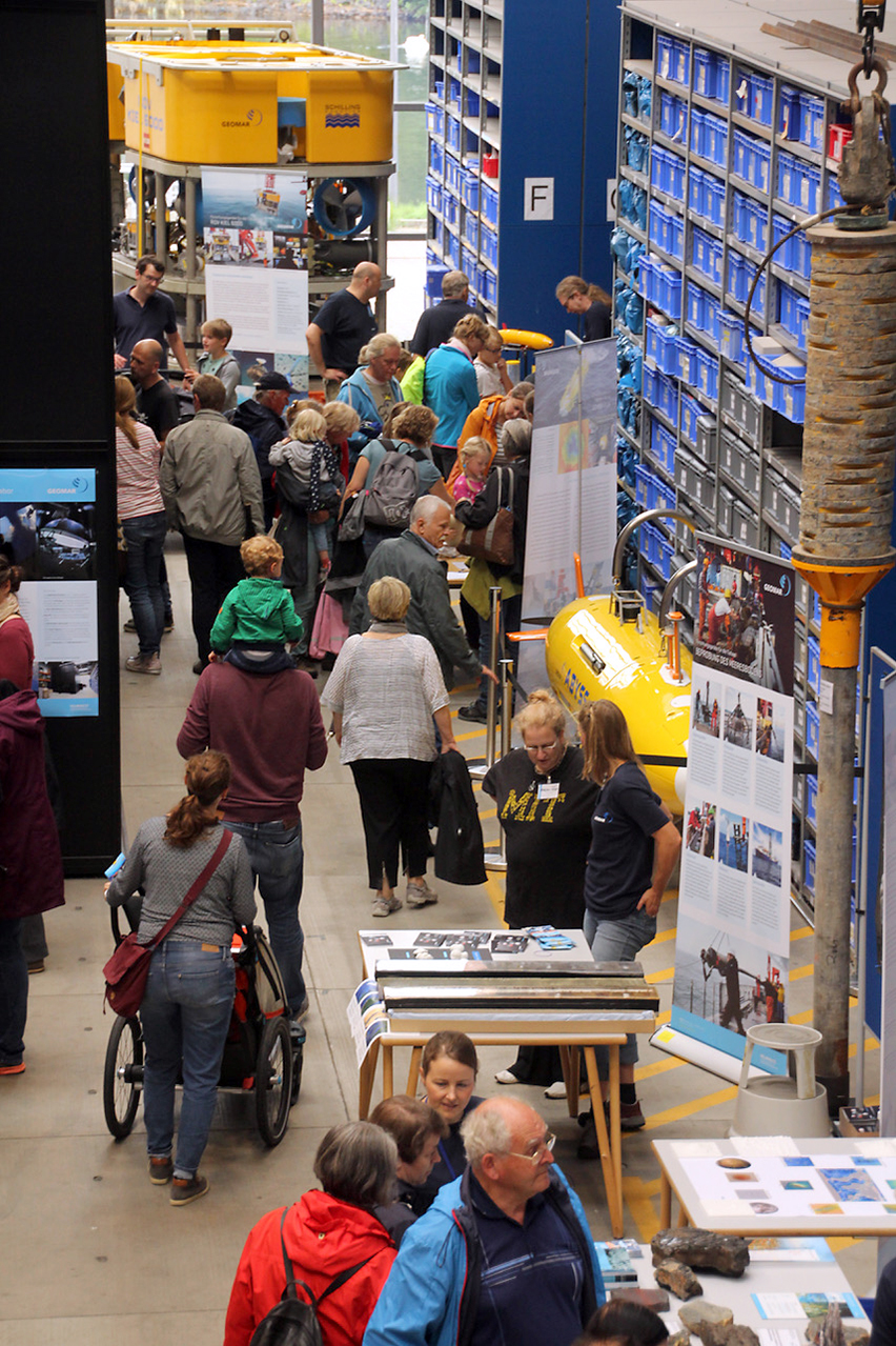 Für Groß und Klein gibt es Angebote: Bei Vorträgen im Hörsaal des GEOMAR können Besucher:innen von Forschenden die Bedeutung von Seegras für das Klima lernen, wie schnell der Meeresspiegel jetzt und in Zukunft steigt oder wo man Süßwasser im salzigen Meer findet. An vielen Informationsständen und bei Mitmachaktionen erhalten Interessierte tiefer gehende Einblicke in die aktuellen Themen der Meeresforschung. Wieder mit dabei sind auch Nachwuchsforscher:innen: Jugendliche des „Freitags-Forscher-Clubs“ und anderer Schulprojekte stellen die Ergebnisse ihrer Arbeiten vor. Im Technik- und Logistikzentrum können Besucher:innen aktuelle Meerestechnik kennenlernen, wie zum Beispiel den ferngesteuerten Tiefseeroboter PHOCA, autonome Unterwasserfahrzeuge und innovative Beobachtungssysteme. Hier kann man sogar realistische Modelle von Unterwasserfahrzeugen selbst steuern. Für unsere kleinen Gäste gibt es Kinderbuchlesungen oder die Möglichkeit, aus Meeresmüll Marionetten zu basteln.