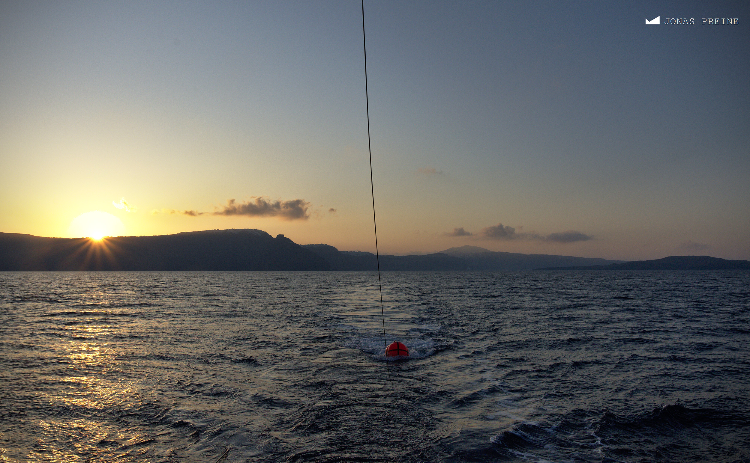 Seismische Messungen während der Expedition POS538 vor Santorini. Der Auftriebskörper markiert die Position der seismischen Quelle. Foto: Jonas Preine