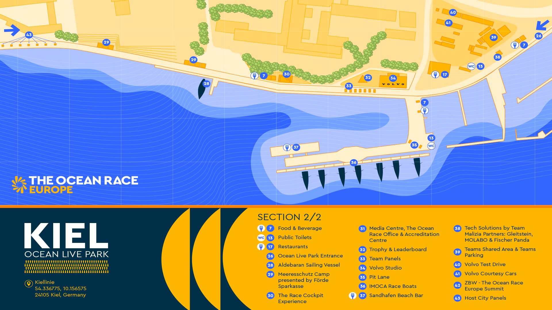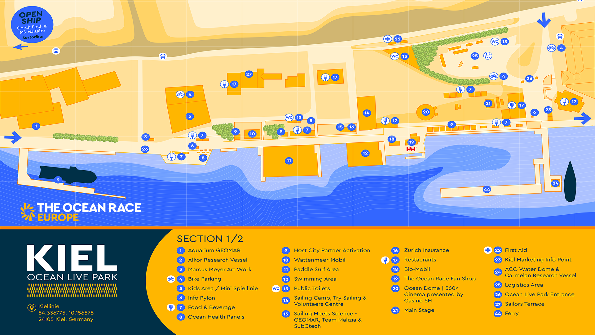 Lageplan KIEL OCEAN LIVE PARK, Teil 1: Das GEOMAR präsentiert sich unter anderem in einer Pagode an der Kiellinie (Punkt 15).