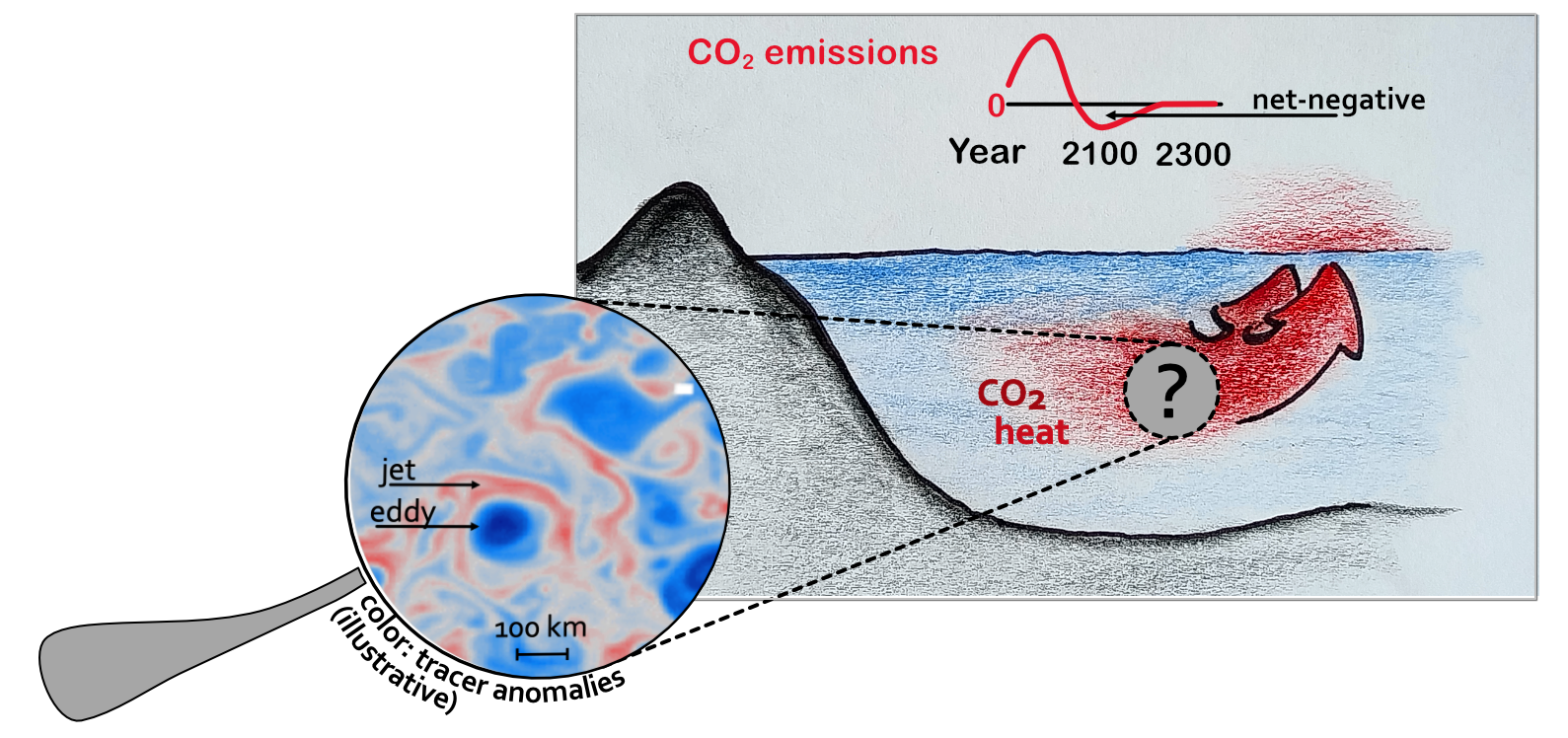 „Es ist Grundlagenforschung“, sagt Frenger, „wir müssen die Prozesse verstehen, um ermessen zu können, was die Konsequenzen unserer Eingriffe sein könnten, wie zum Beispiel eine starke aktive Entnahme von Kohlendioxid aus der Atmosphäre.“ Ihre Fragestellung betrachtet erstmals wie sich sowohl das im Ozean seit der Industrialisierung angesammelte Kohlendioxid (CO2) als auch die Wärme unter solchen Bedingungen verhalten und welche Prozesse im Ozean dabei jeweils die Wichtigsten sind, insbesondere, welche Rolle Transporte und Mischung durch Wirbel spielen. „Rund 40 Prozent der Emissionen fossiler Brennstoffe und 90 Prozent der Wärme hat der Ozean aufgenommen. Jetzt haben wir das politische Ziel, die Emissionen zu stoppen oder sogar, wenn wir unser Klimaziel verfehlen, langfristig CO2 aus der Atmosphäre zu entnehmen. Was passiert dann mit dem, was der Ozean bereits aufgenommen hat?“, umreißt Frenger das Problem.