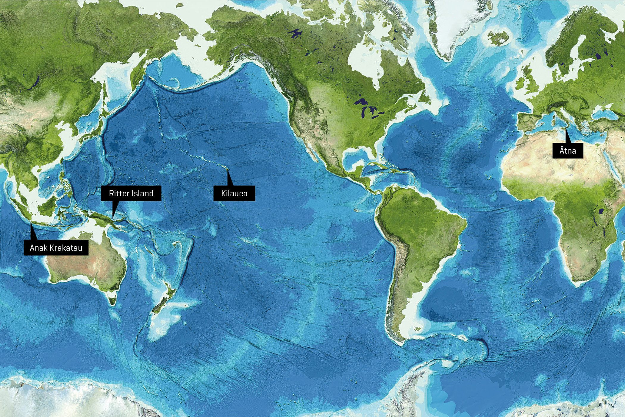 Im Fokus des Projekts werden die Vulkane Ätna (Italien), Anak Krakatau (Indonesien), Ritter Island (Papua-Neuguinea) und Kilauea (Hawaii, USA) stehen. Messungen vor Ort, numerische Modelle und Laborexperimente an Vulkangesteinen werden zusammen neue Erkenntnisse darüber ermöglichen, welche Mechanismen große Flankenzusammenbrüche auslösen. Auch die im Herbst 2020 am Ätna ausgebrachten Messgeräte tragen wichtige Daten zum Projekt bei. „Es handelt sich um Sensoren aus dem GeoSEA-Programm am GEOMAR. Sie messen sehr präzise über weite Entfernungen unter Wasser den Abstand zueinander und geben so Auskunft über Bewegungen des Untergrundes“, erklärt Morelia Urlaub.