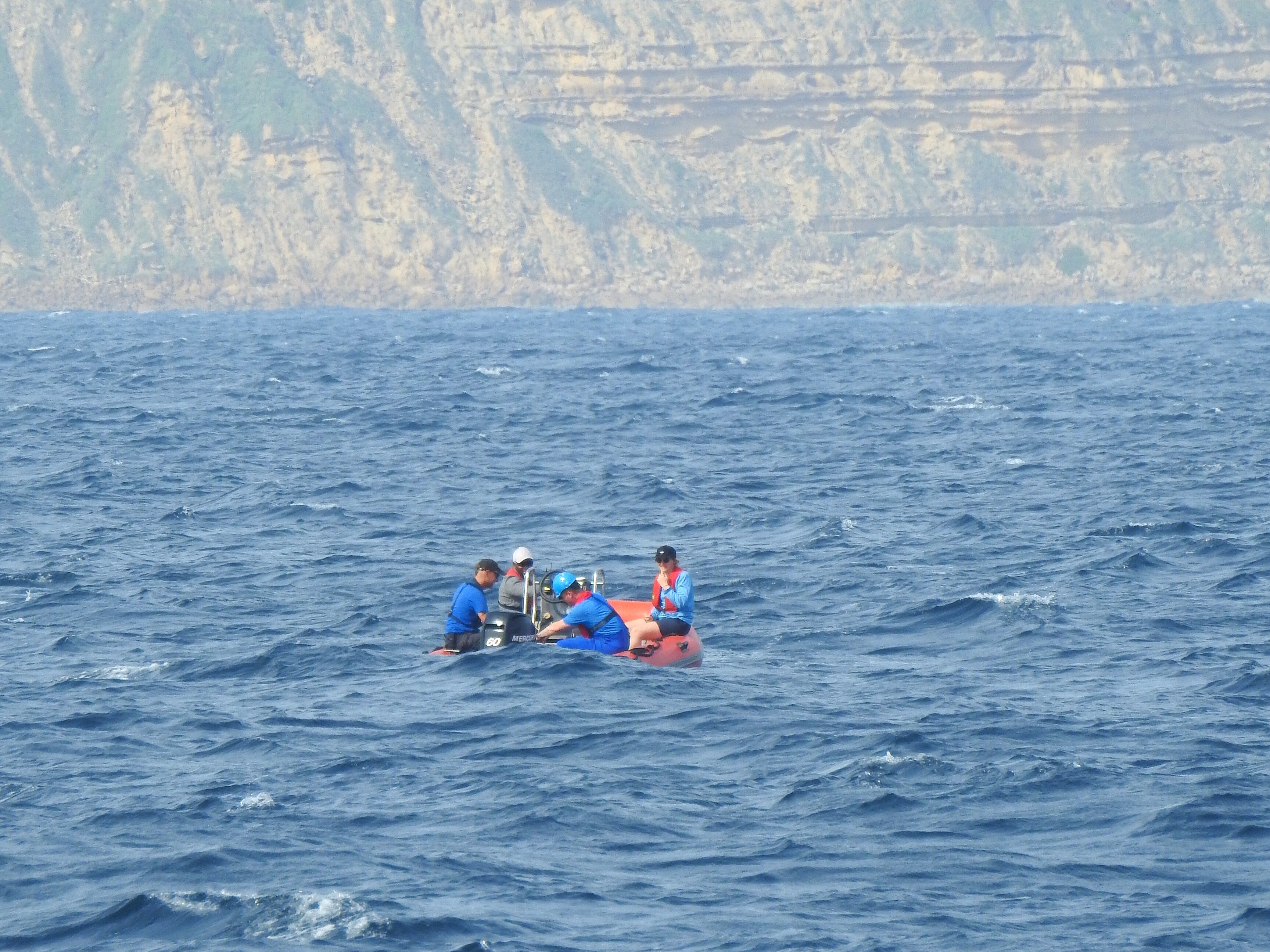 Mikrostrukturmessungen vom Schlauchboot aus: Während der METEOR-Expedition M189 untersuchten die Forschenden unter anderem die Durchmischung auf dem Schelf. Foto: Philipp Henning, GEOMAR