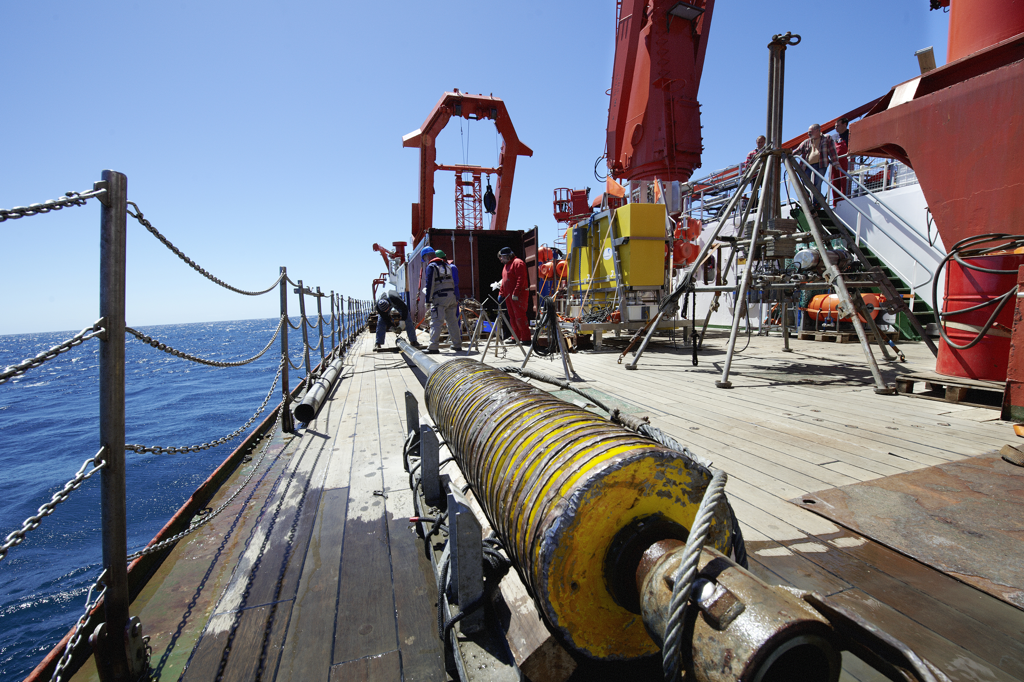 Während der Expedition entnimmt das Team eine Serie von Schwerelot-Sedimentkernen quer über das Spreizungszentrum. So entsteht eine hochauflösende Zeitreihe, aus der die Wissenschaftler:innen wichtige Informationen zur Entstehung des Meeresbodens herauslesen können.