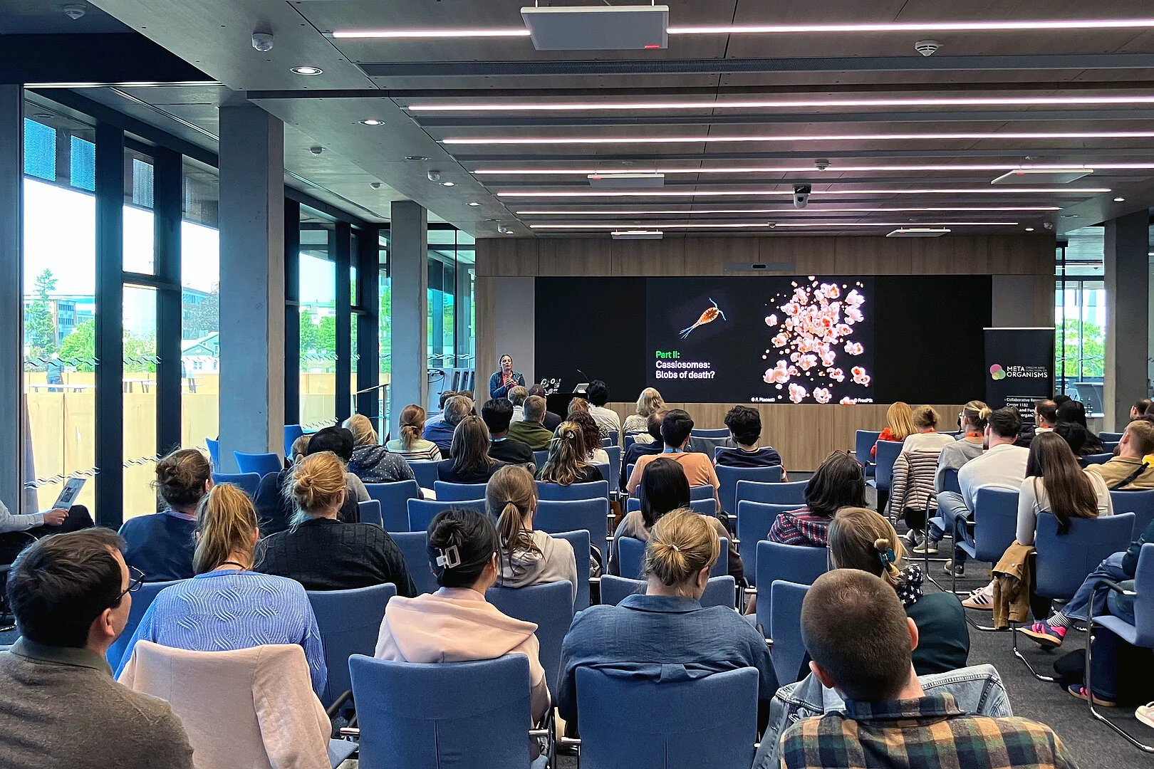 Rund 100 Forschende kommen am GEOMAR Kiel zusammen, um die Prinzipien der Kommunikation von Wirtslebewesen und Mikroorganismen auf zellulärer Ebene zu diskutieren. Foto: Christian Urban / Uni Kiel