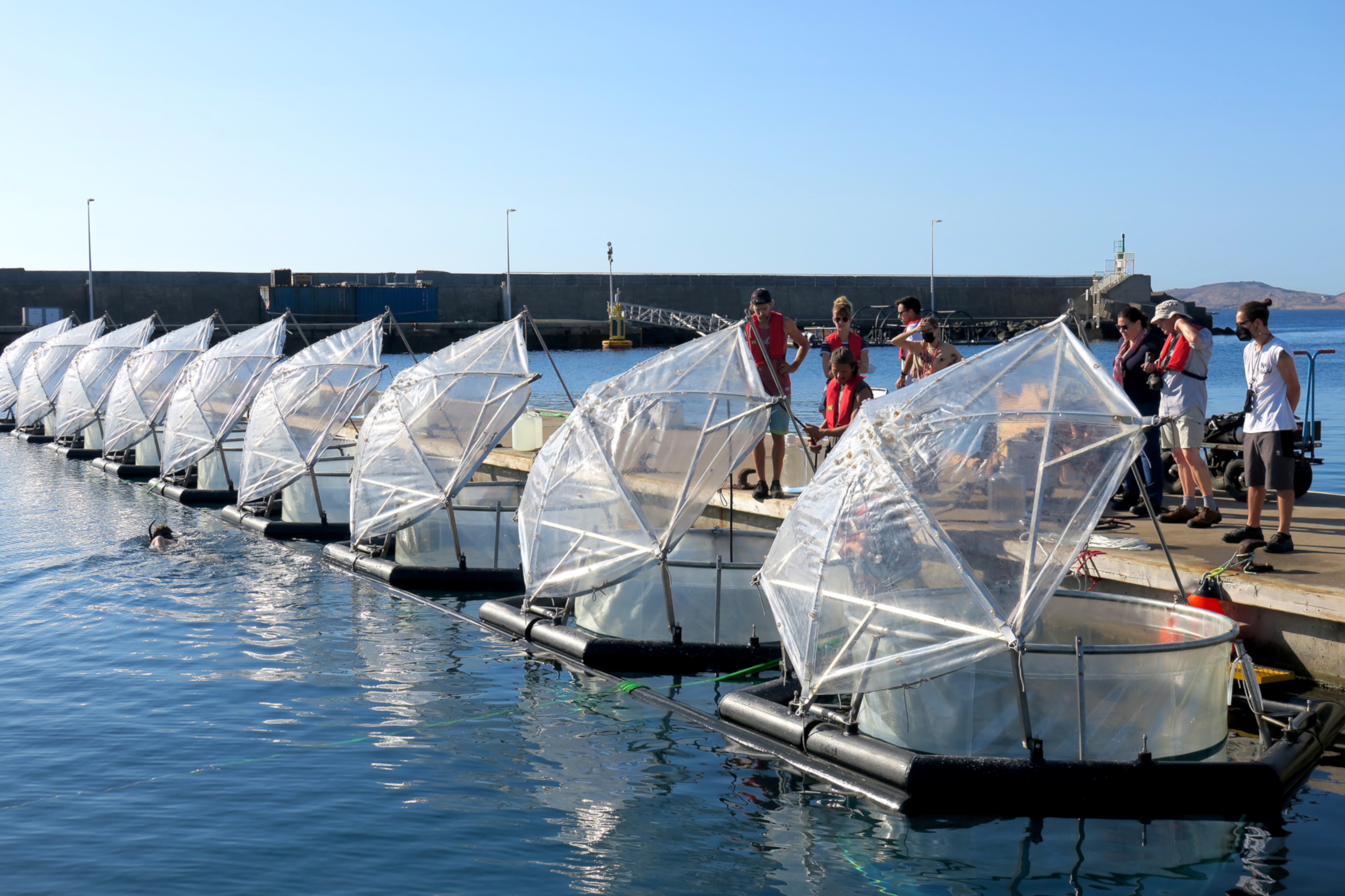 Mesokosmen im Experiment auf Gran Canaria. Foto: Ulf Riebesell, GEOMAR