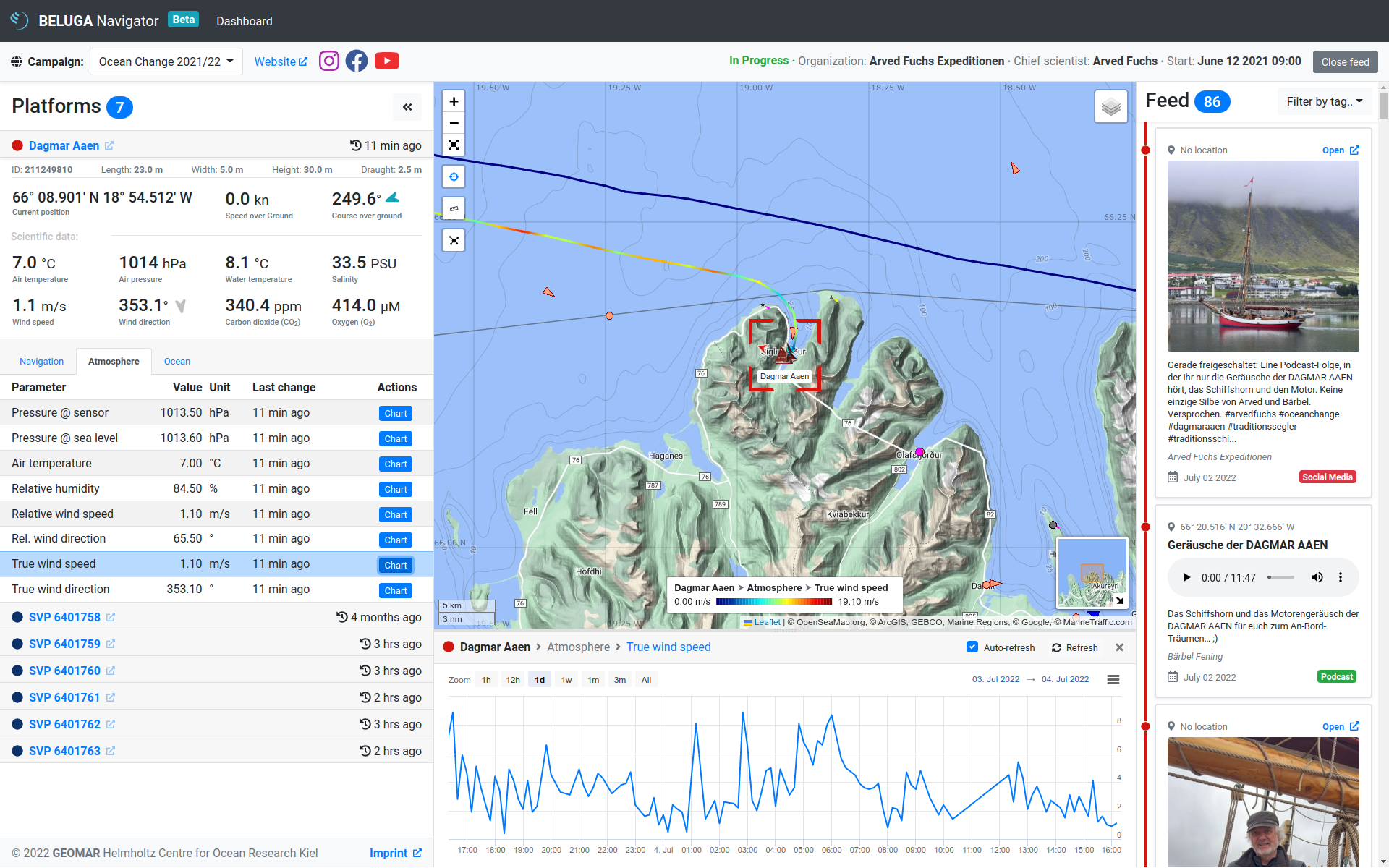 Zusätzlich zu dem jeweils bei den Einsätzen vor Ort genutzten System, gibt es eine öffentliche Version des BELUGA Navigators, die online einsehbar ist.