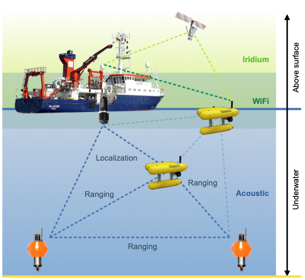 Über das akustische USBL-Modem von Evologics kann die Position einer Plattform unter Wasser bestimmt werden. Dazu schickt das USBL-Modem am Schiff ein Signal an das Modem der Plattform, dessen Position bestimmt werden soll und das Modem an der Plattform antwortet auf die Nachricht. Basierend auf der Richtung, aus der die Antwort kam und der Zeit, die seit dem Senden des Signal vergangen ist, kann dann die Position der Plattform berechnet werden. Diese Positionsbestimmung durch "anpingen" eines Modems ist für alle Plattformen, die über ein Evologicsmodem für den passenden Frequenzbereich verfügen, möglich.