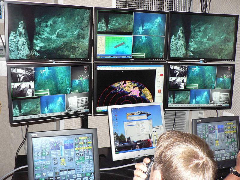 (2) Durchführung einer Reihe von Tauchgängen mit dem WHOI AUV ABE über den Brothers und Rumble II West Vulkanen, um vollständige und detaillierte Karten des Meeresbodens zu erstellen, inklusive der Erfassung des magnetischen Feldes und anderer physikalischer und chemischer Parameter des überlagernden hydrothermalen Plumes mittels unterschiedlicher Sensoren.