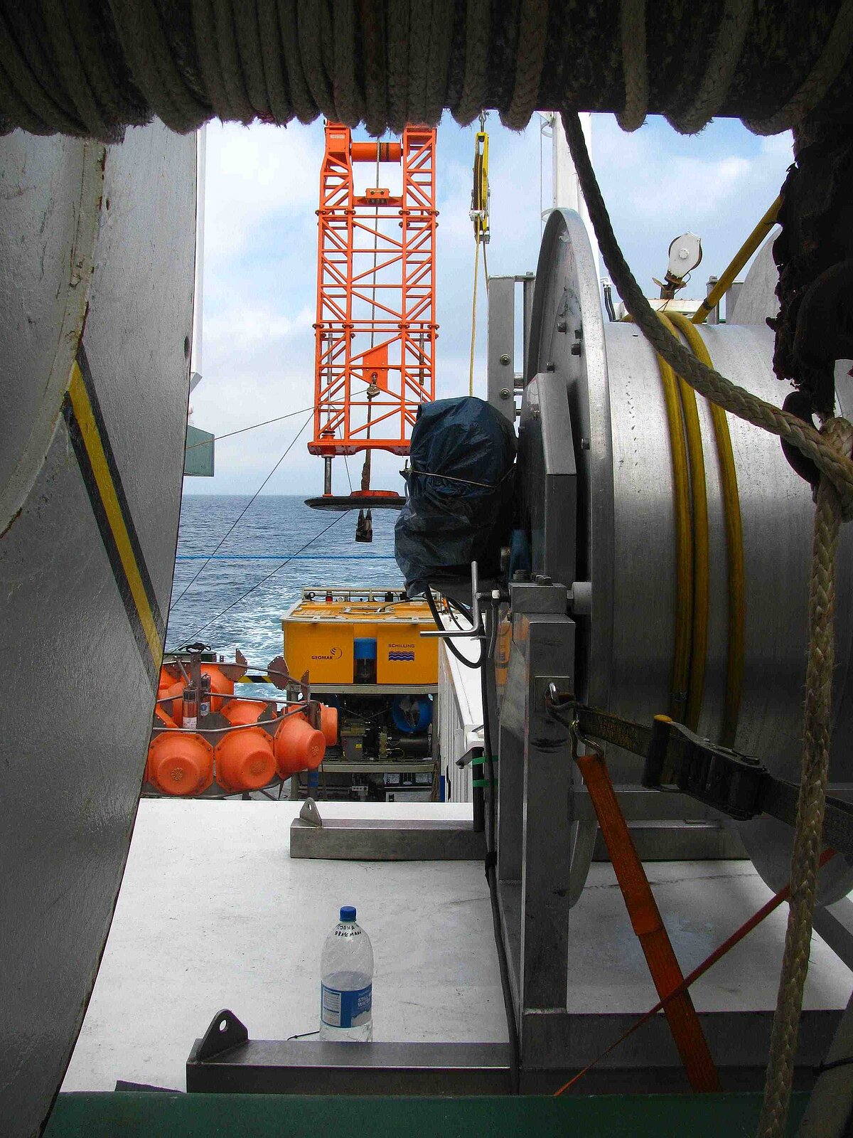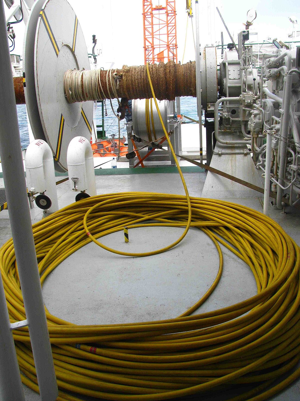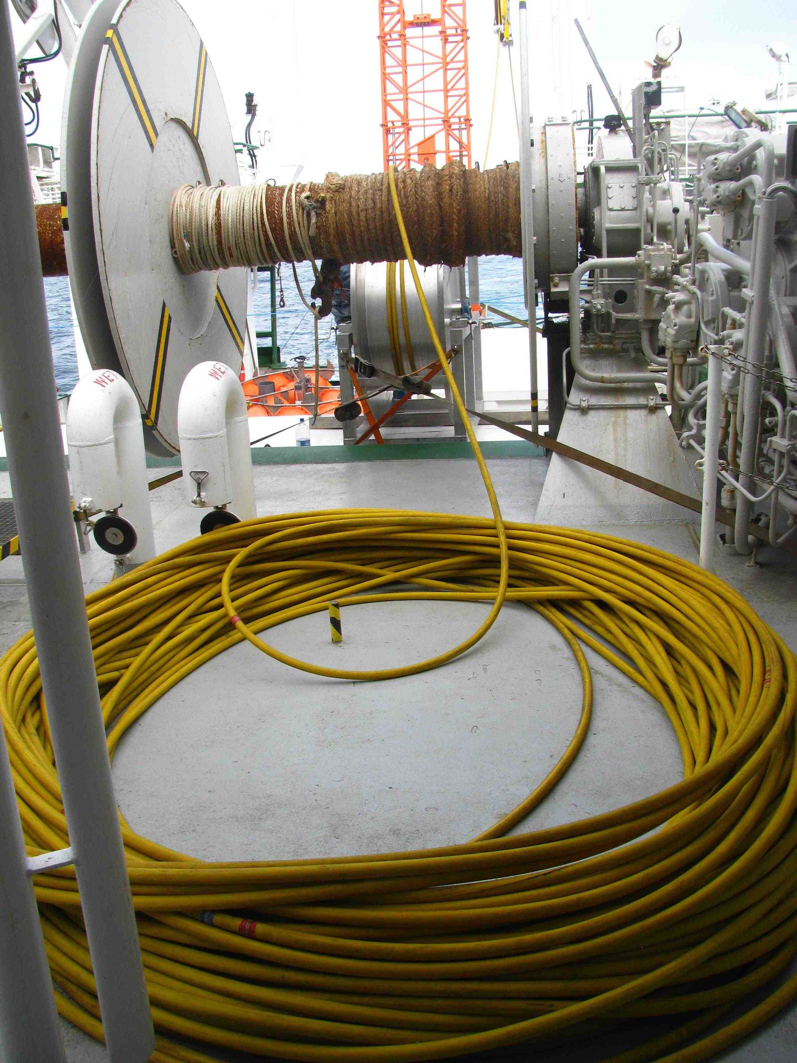 Für Flachwassereinsätze bis ca. 350 m Wassertiefe kann eine Schwimmkabelwinde eingesetzt werden. Es handelt sich hierbei um eine einfach elektrische Spulwinde ohne Schleifring, die im Betrieb als Spillkopf fungiert.