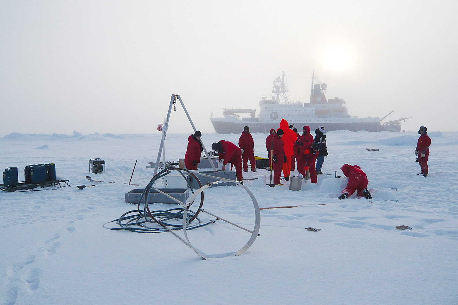 Weniger kalt ist es im Bauch des Schiffes. Hier arbeitet und lebt eine Schiffscrew von bis zu 44 Personen und außerdem maximal 55 Wissenschaftler und Techniker. In neun wissenschaftlichen Laboren machen internationale Forscher biologische, geologische und geophysikalische, aber auch glaziologische, chemische sowie ozeanographische und meteorologische Forschungsarbeiten.