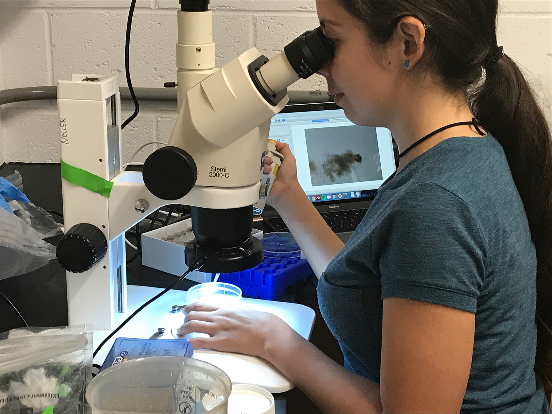 Zuerst müssen wir einzelne sinkende Partikel fangen. Wir haben diese Studien in der Sargassosee südlich von Bermuda durchgefuert, der Teil des Bermuda Atlantic Time-series Study-Standorts (BATS) ist, einer Station im Ozean, die seit 1988 jeden Monat mindestens einmal untersucht wird. Erst kürzlich konnten wir ein Set von Sammlungstuben mit Gelbechern hinzufügen, die es uns ermöglichen, die einzelnen Partikel zu sammeln und verschiedene Partikeltypen zu untersuchen. Wir tun dies durch Mikroskopie und durch Extraktion ihrer DNA, sodass wir einzelne Organismen identifizieren können, die jedem Partikel einen Fingerabdruck seiner Geschichte und seines Schicksals verleihen. Wir haben zum Beispiel herausgefunden, dass alle in dieser Region gesammelten Partikel von Zooplankton bearbeitet wurden. Wir wissen das, weil wir Bakterien in den Partikeln gefunden haben, die Teil des Zooplankton Mikrobioms sind. Diese Studien haben auch auf die Bedeutung des ansässigen Zooplanktons hingewiesen, das derzeit ein Forschungsschwerpunkt in meiner Arbeitsgruppe ist.