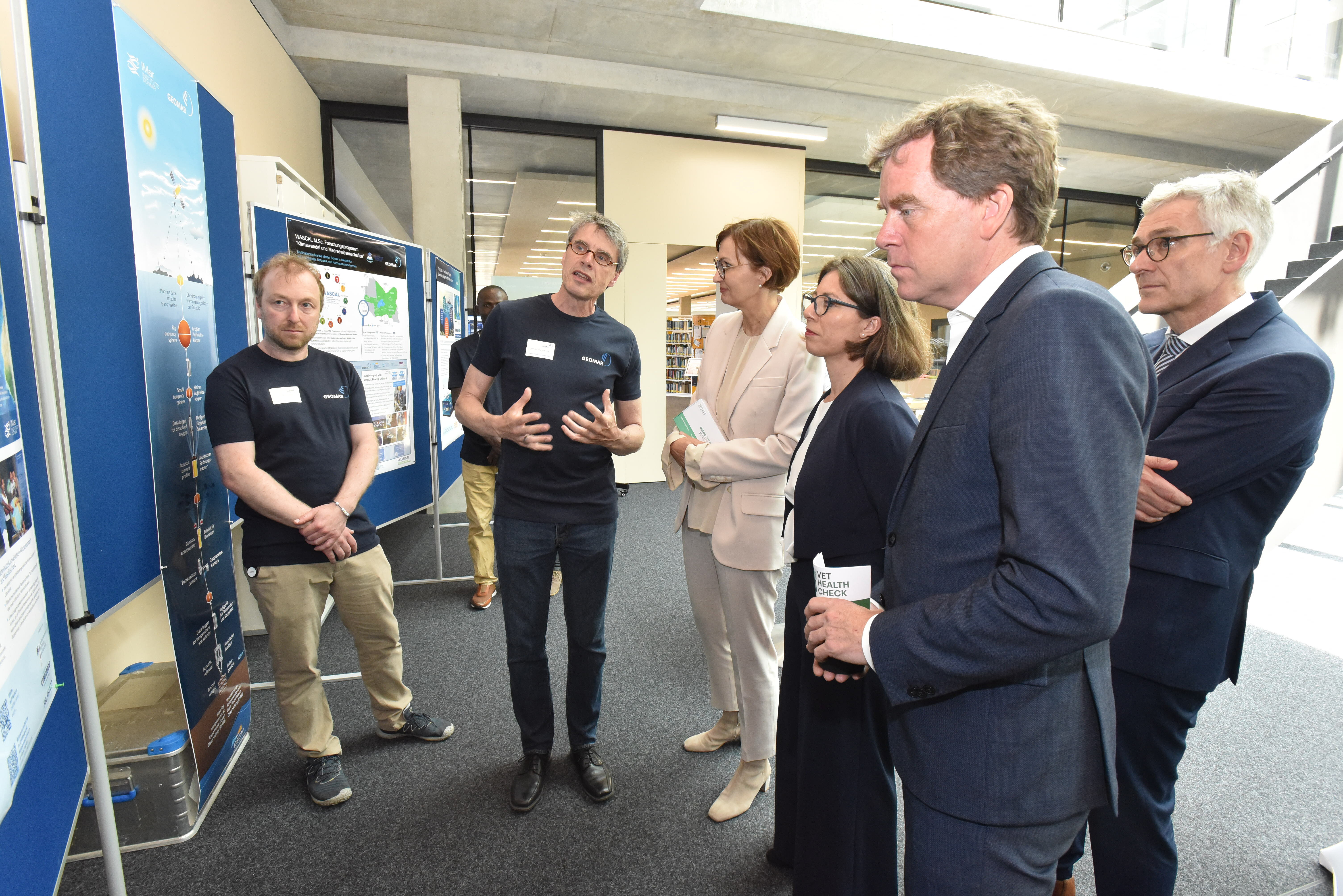 Bei ihrem Rundgang informierte sich Ministerin Bettina Stark-Watzinger unter anderem über die Forschung des GEOMAR und seiner Partner in Cabo Verde. Foto: Thomas Eisenkrätzer, GEOMAR
