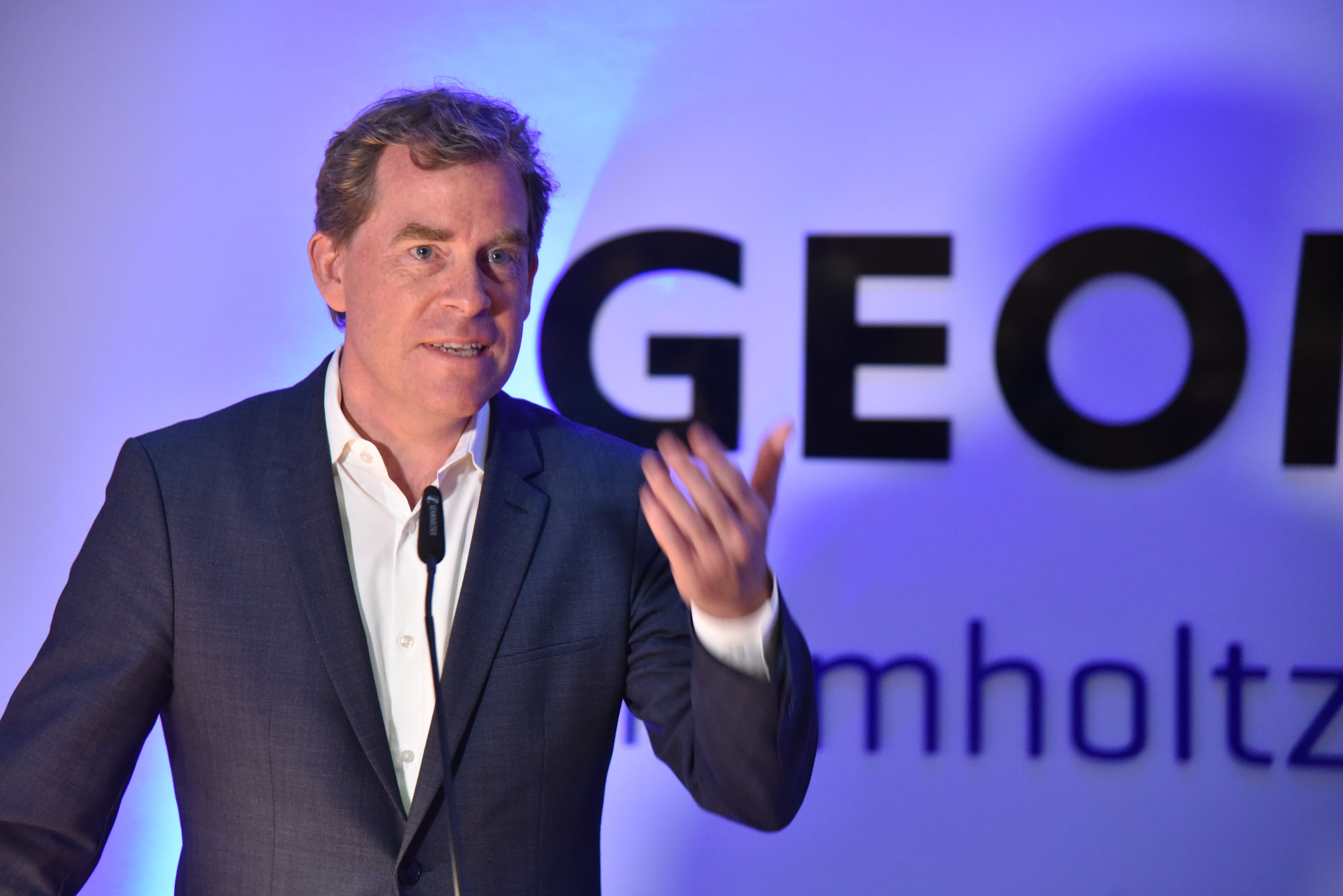 Prof. Dr. Otmar Wiestler, Präsident der Helmholtz-Gemeinschaft, gratulierte per Videobotschaft. Foto: Thomas Eisenkrätzer, GEOMAR