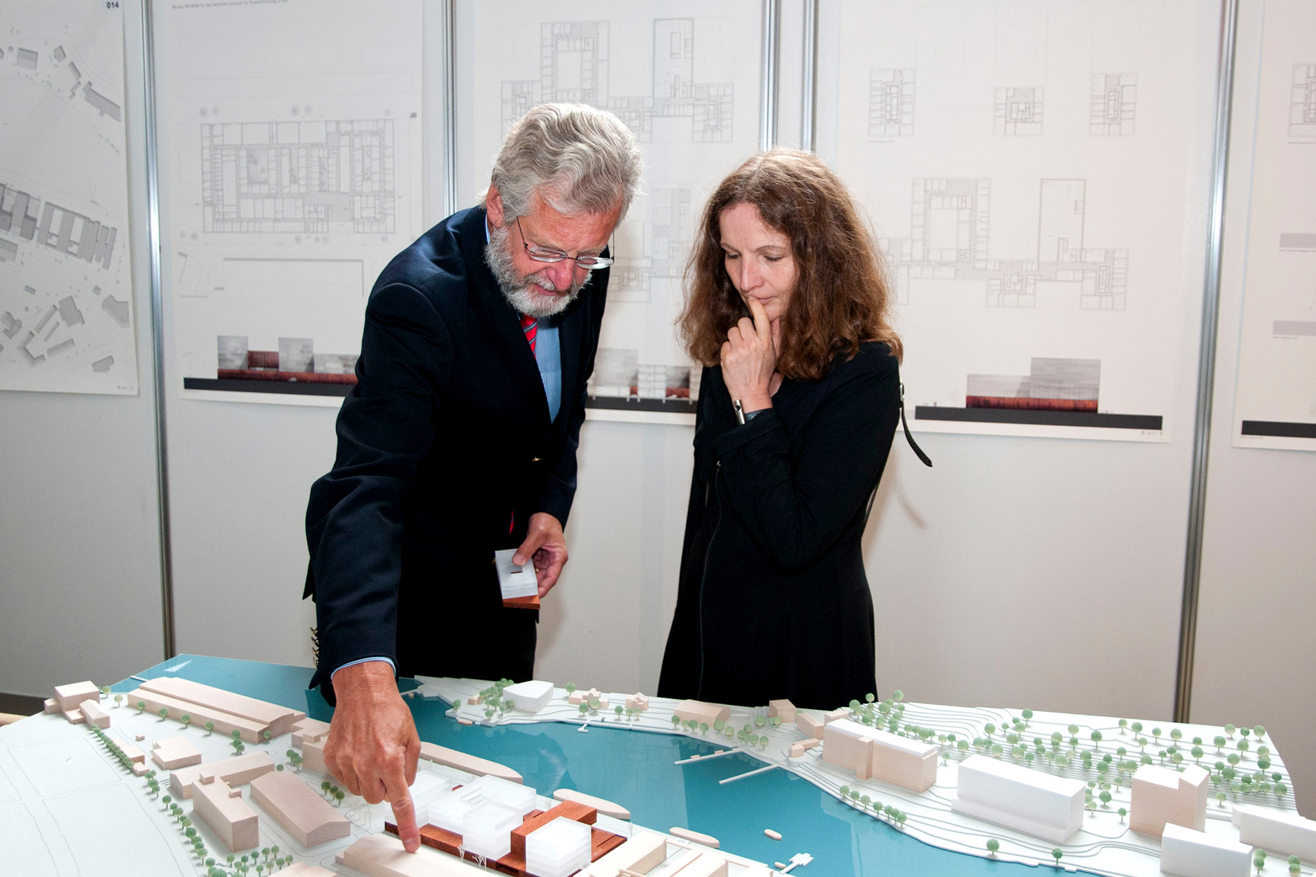 Die damalige Ministerin für Bildung und Wissenschaft des Landes Schleswig-Holstein, Prof. Dr. Waltraud Wende, informierte sich am 07. September 2012 bei ihrem Antrittsbesuch am GEOMAR ebenfalls über den geplanten Neubau. Foto: Jan Steffen/GEOMAR