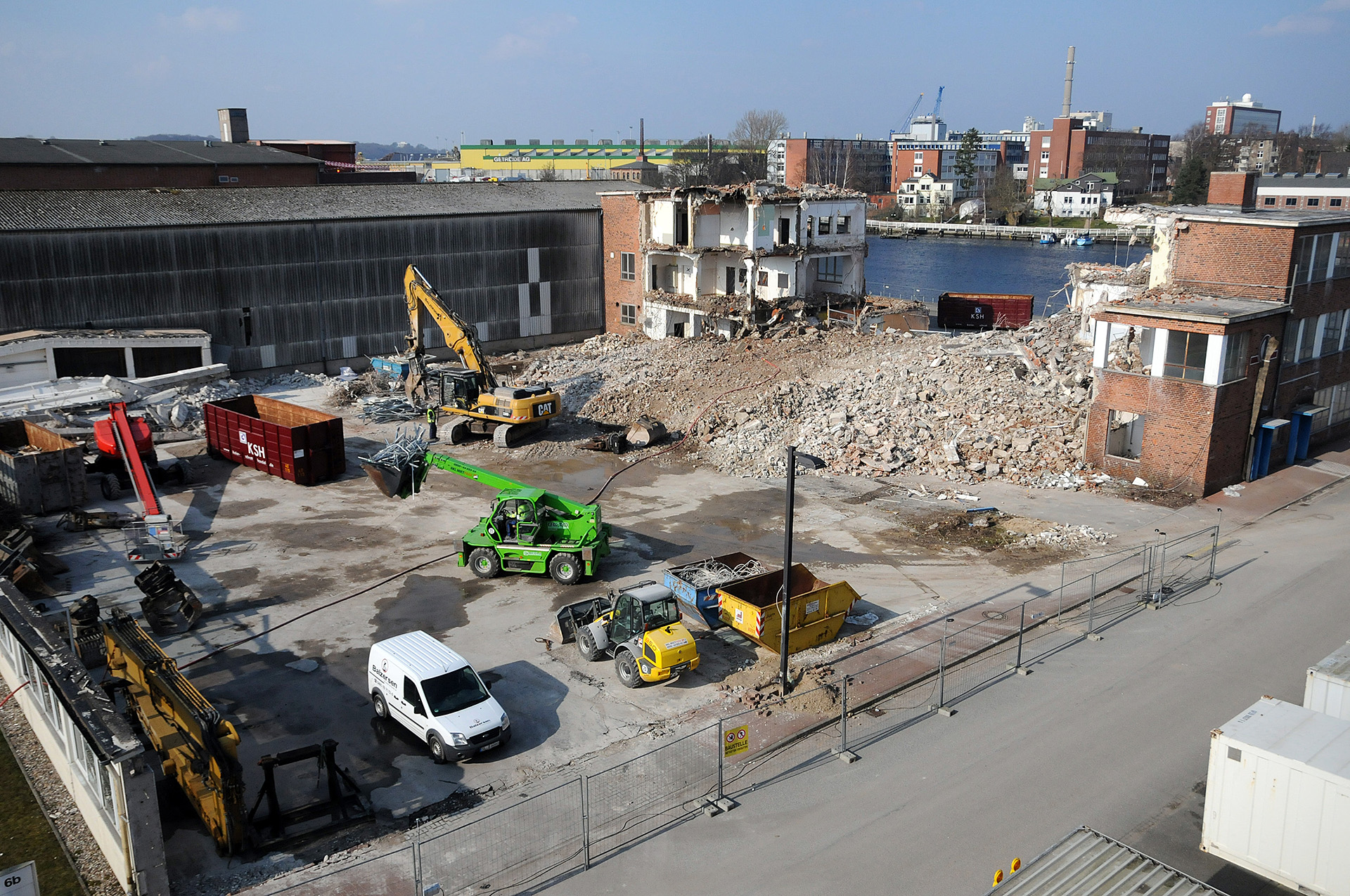 März 2016: Abbrucharbeiten am Gebäude 6. Foto: Jan Steffen/GEOMAR