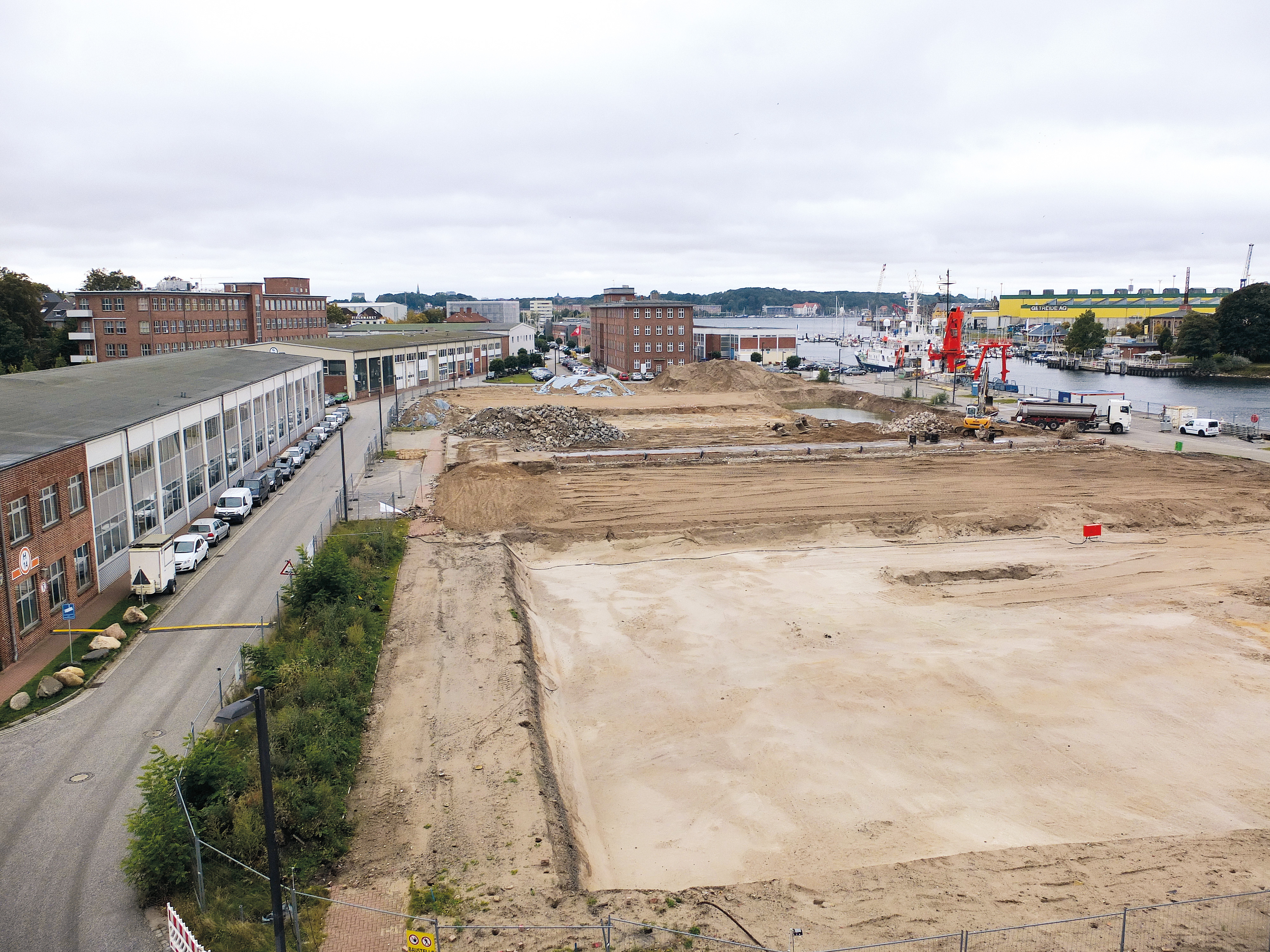 Luftbild des Geländes am Kieler Ostufer vor dem Abriss der alten Bebauung. Foto: Andreas Villwock/GEOMAR.