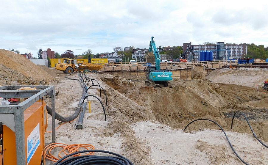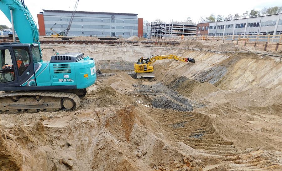 Im westlichen Baufeld graben sich die Bagger Meter um Meter in die Tiefe. Foto: Bauteam GEOMAR