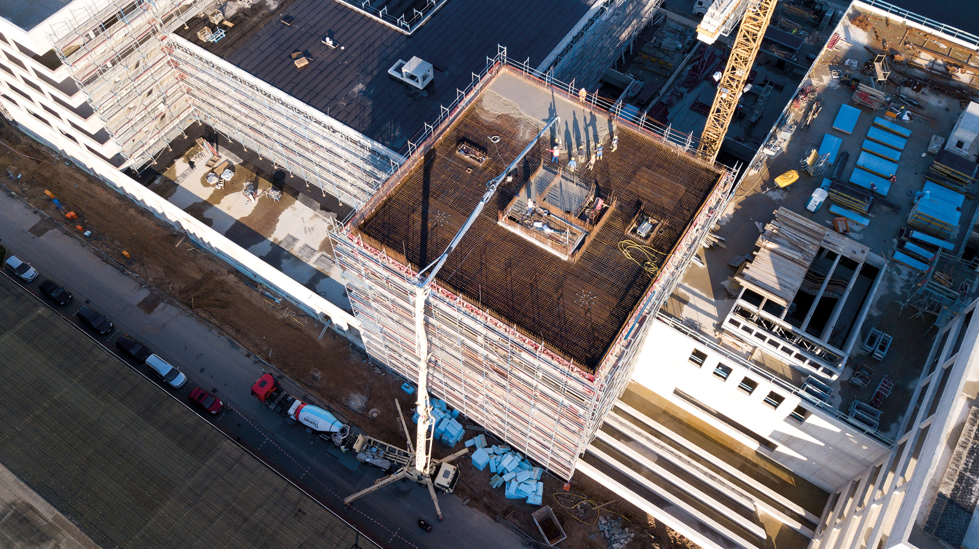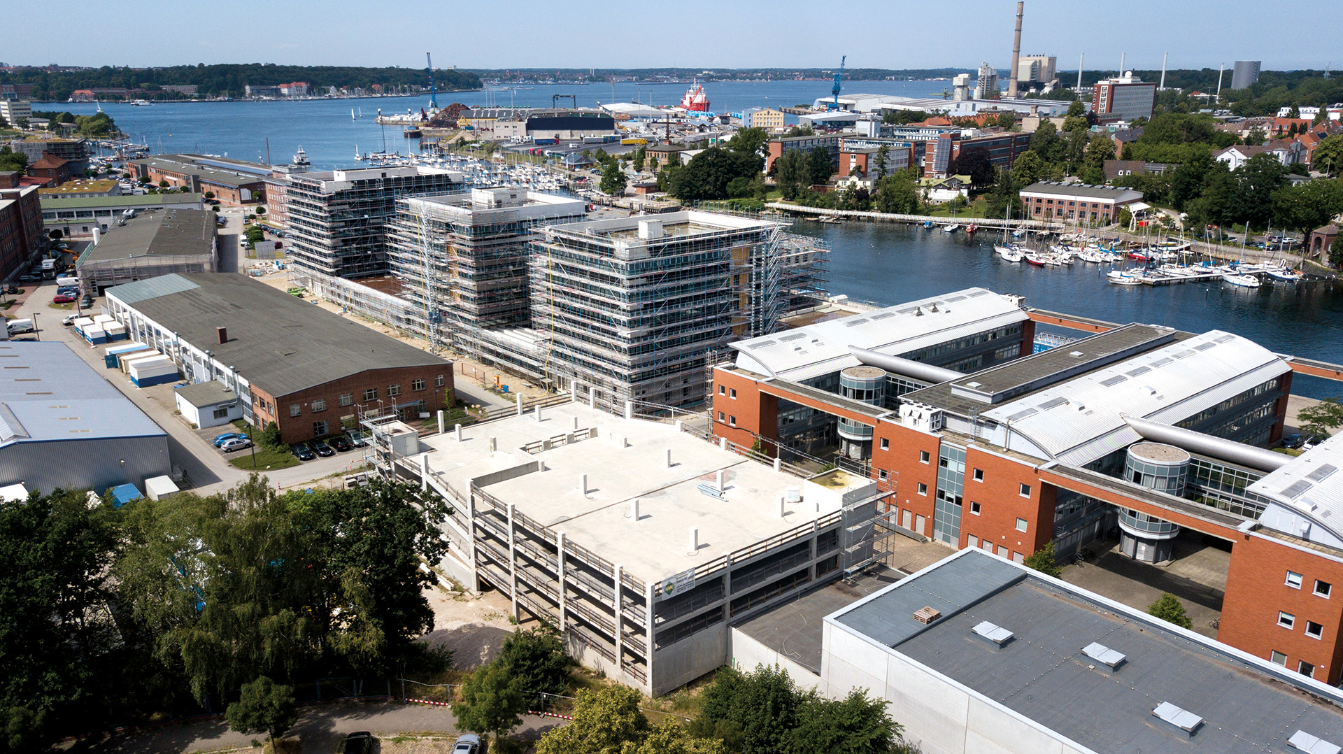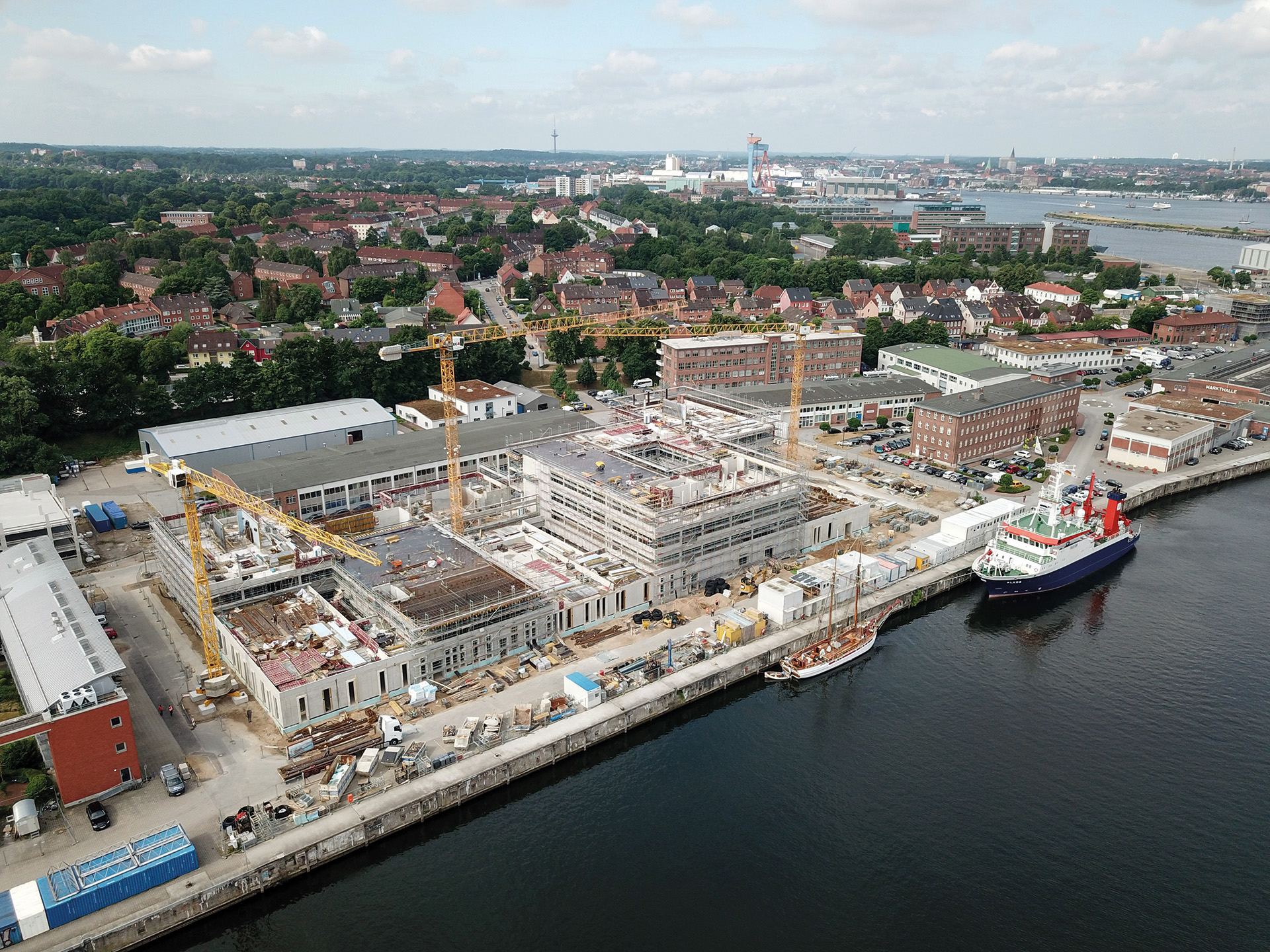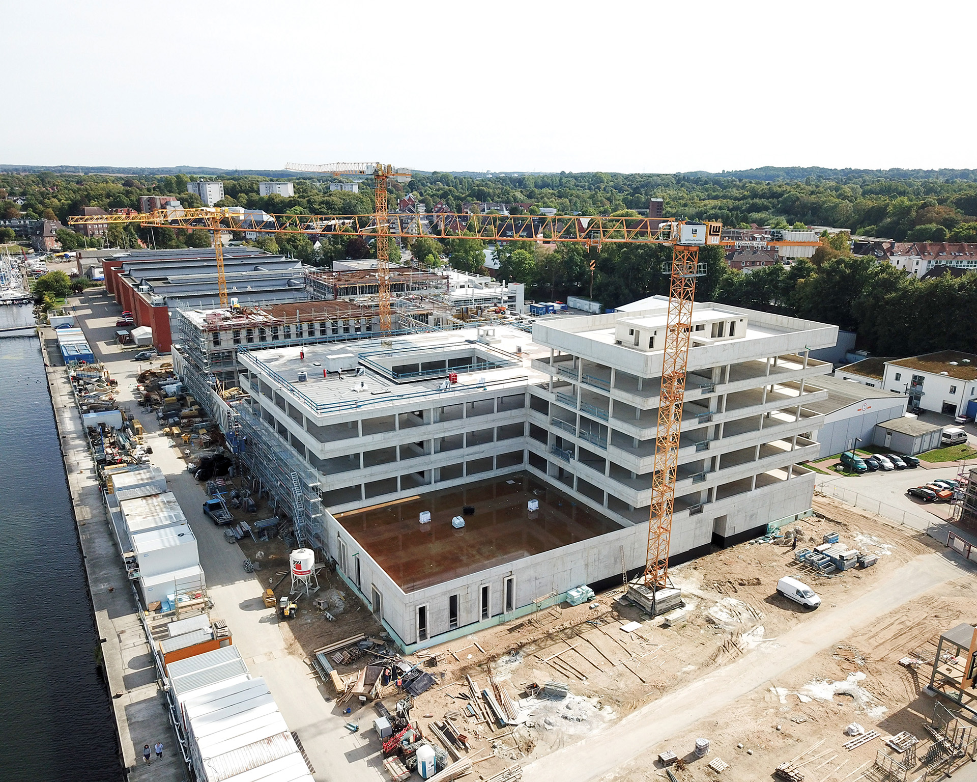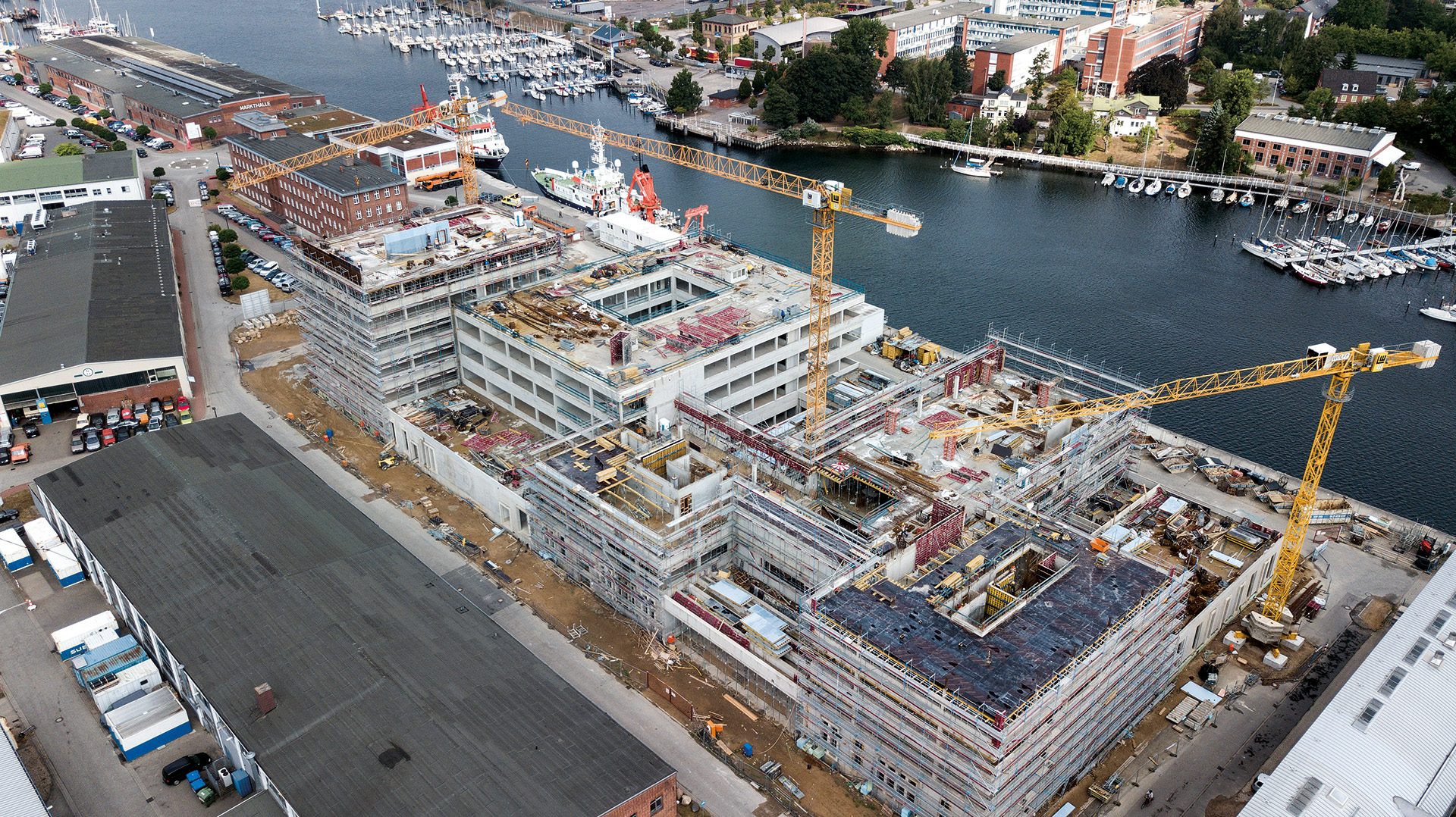 09 | Blick von Westen im September 2018: Der Rohbau der Türme 4 und 5 ist bereits fertiggestellt. Foto: Jens Klimmeck/GEOMAR