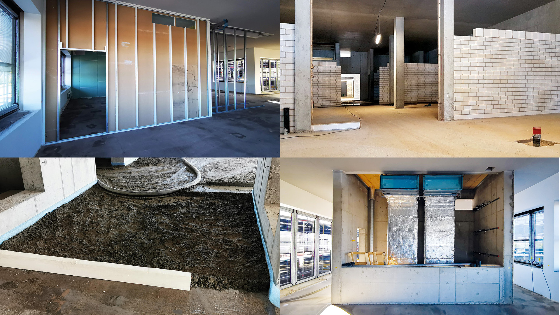 Innenausbau im Detail: Trockenbauwände, Gemauerte Innenwände, Estricharbeiten und Einbau der Lüftungsschächte. Fotos: Armin Form/GEOMAR