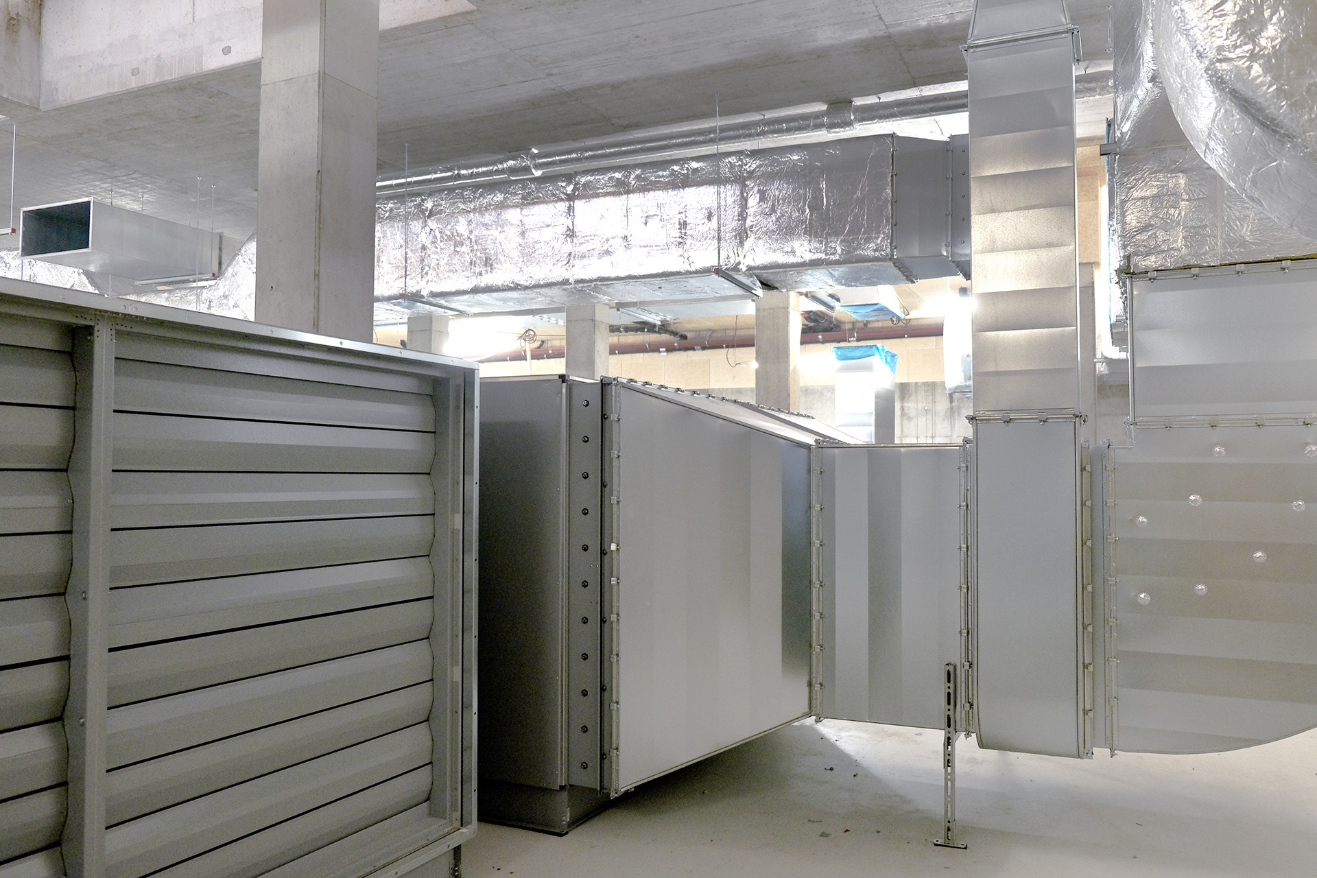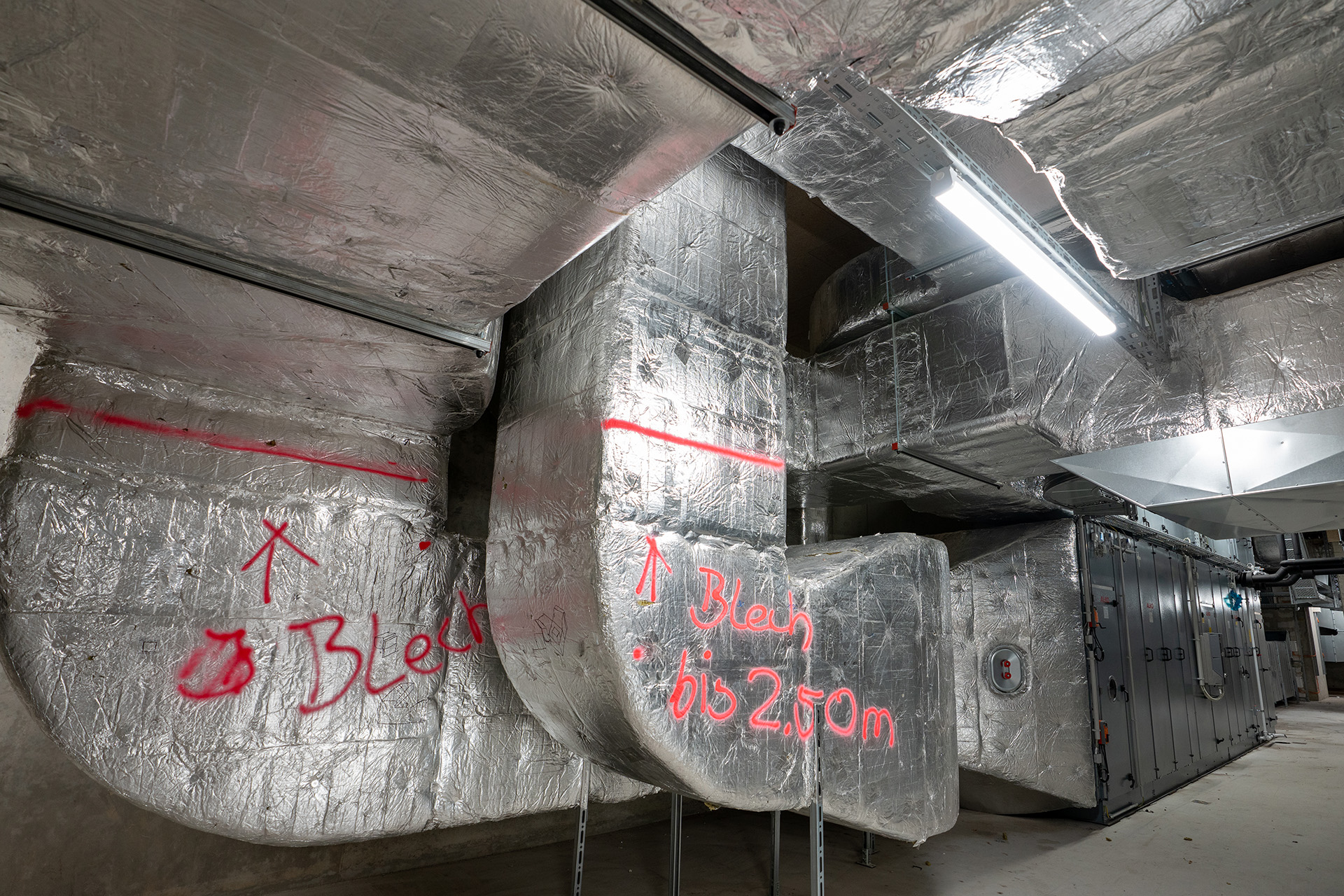 05 | Lüftungszentrale im Untergeschoß. Allein für die Raumluft werden hier pro Stunde rund 180.000 Kubikmeter Luft aufbereitet – das entspricht der Luftmenge, die ein Mensch in ungefähr 40 Jahren ein- und ausatmet. Foto: Marie Gundlach/GEOMAR