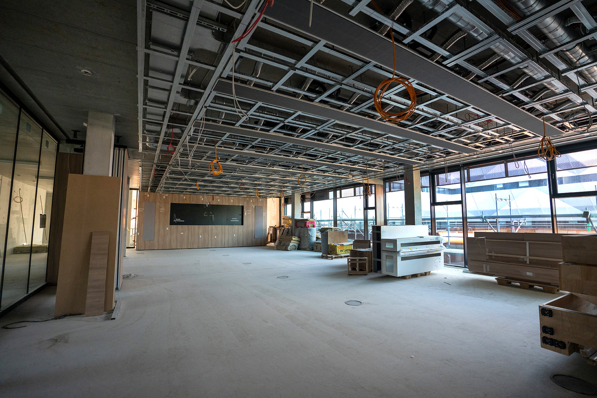 Innenausbau des Konferenzraums im Februar 2022. Foto: Sarah Kaehlert/GEOMAR